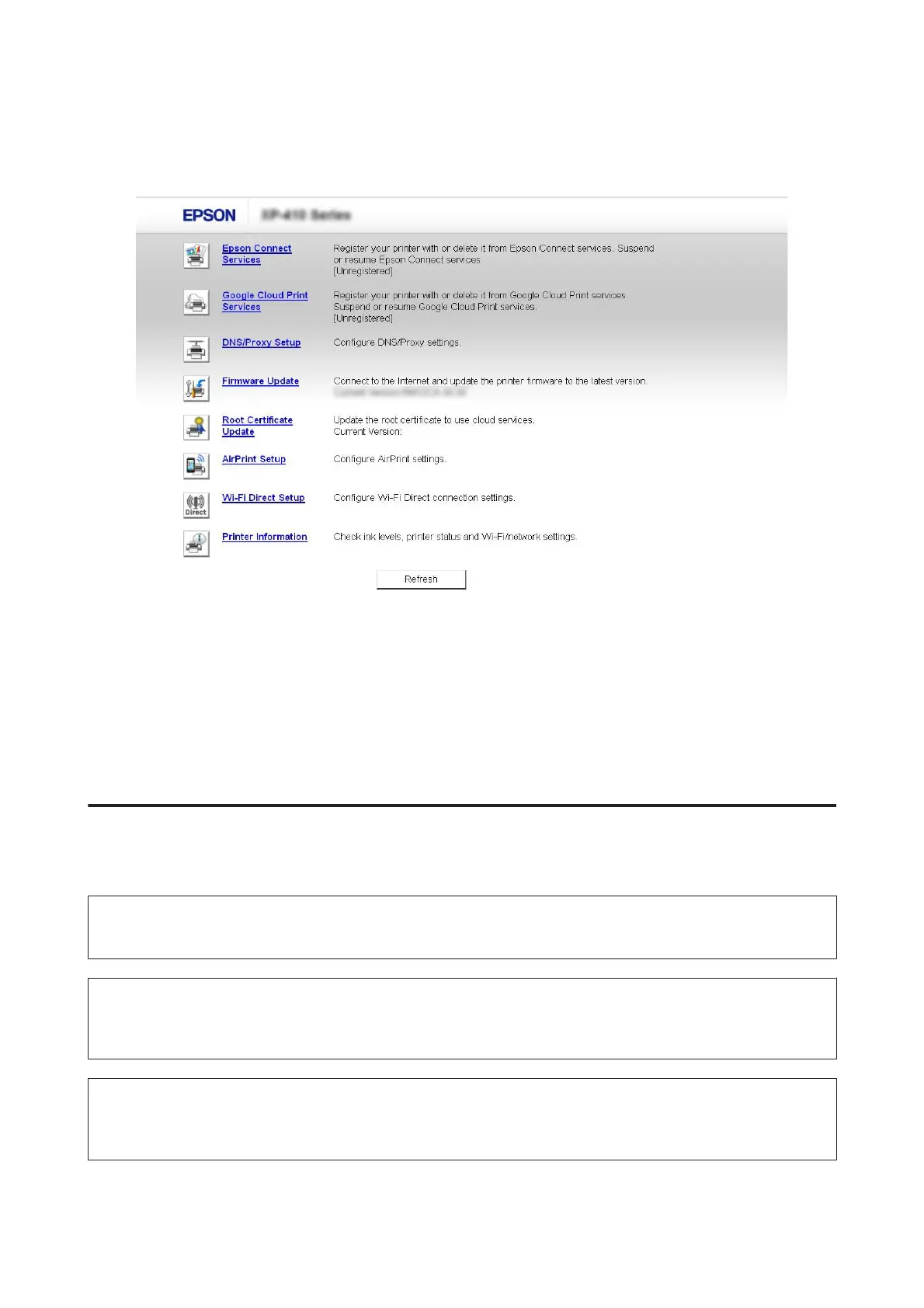 The web page also allows you to check the product’s status and update the product’s firmware.
