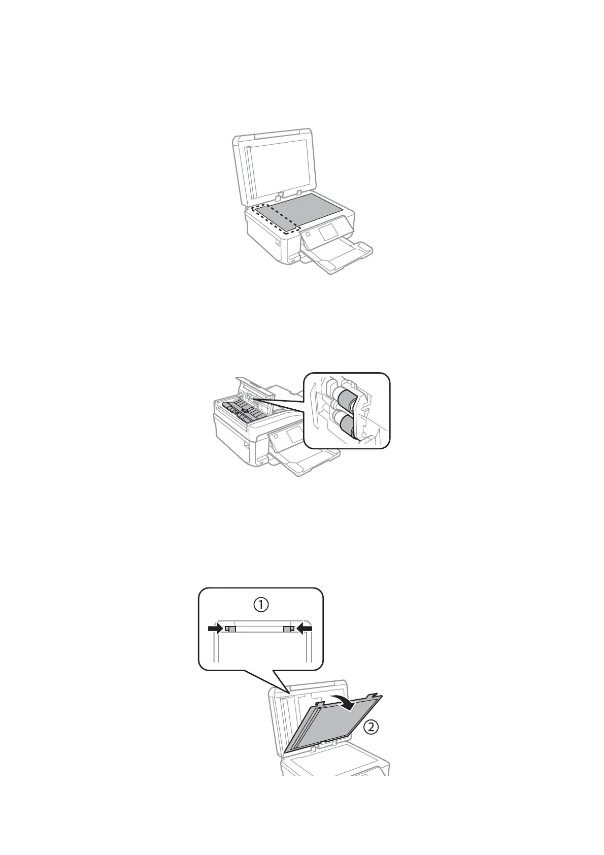 ❏ Open the ADF cover and use a soft, dry, clean cloth to clean the roller and the interior of the ADF (only for