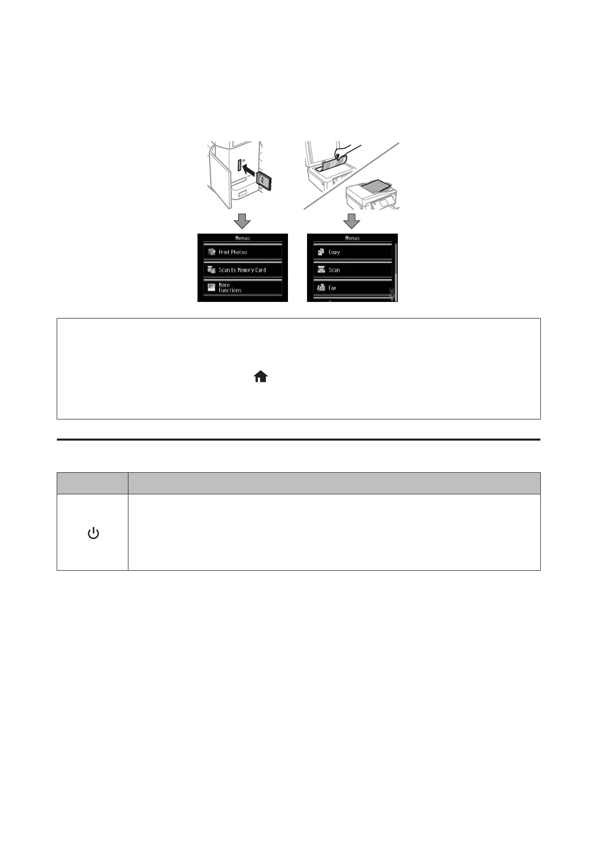 ❏ When you insert a memory card, open the document cover, or load a document in the ADF, the LCD screen may not