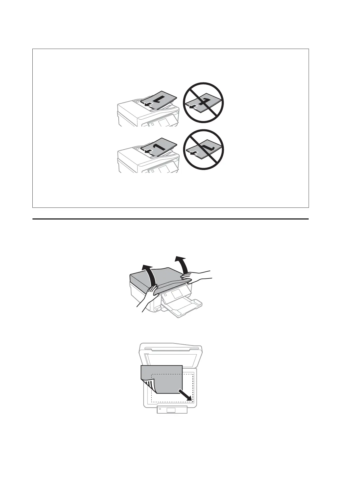 ❏ For A4, 2-up Copy layout, place the original as shown. Make sure the orientation of the original matches the Document