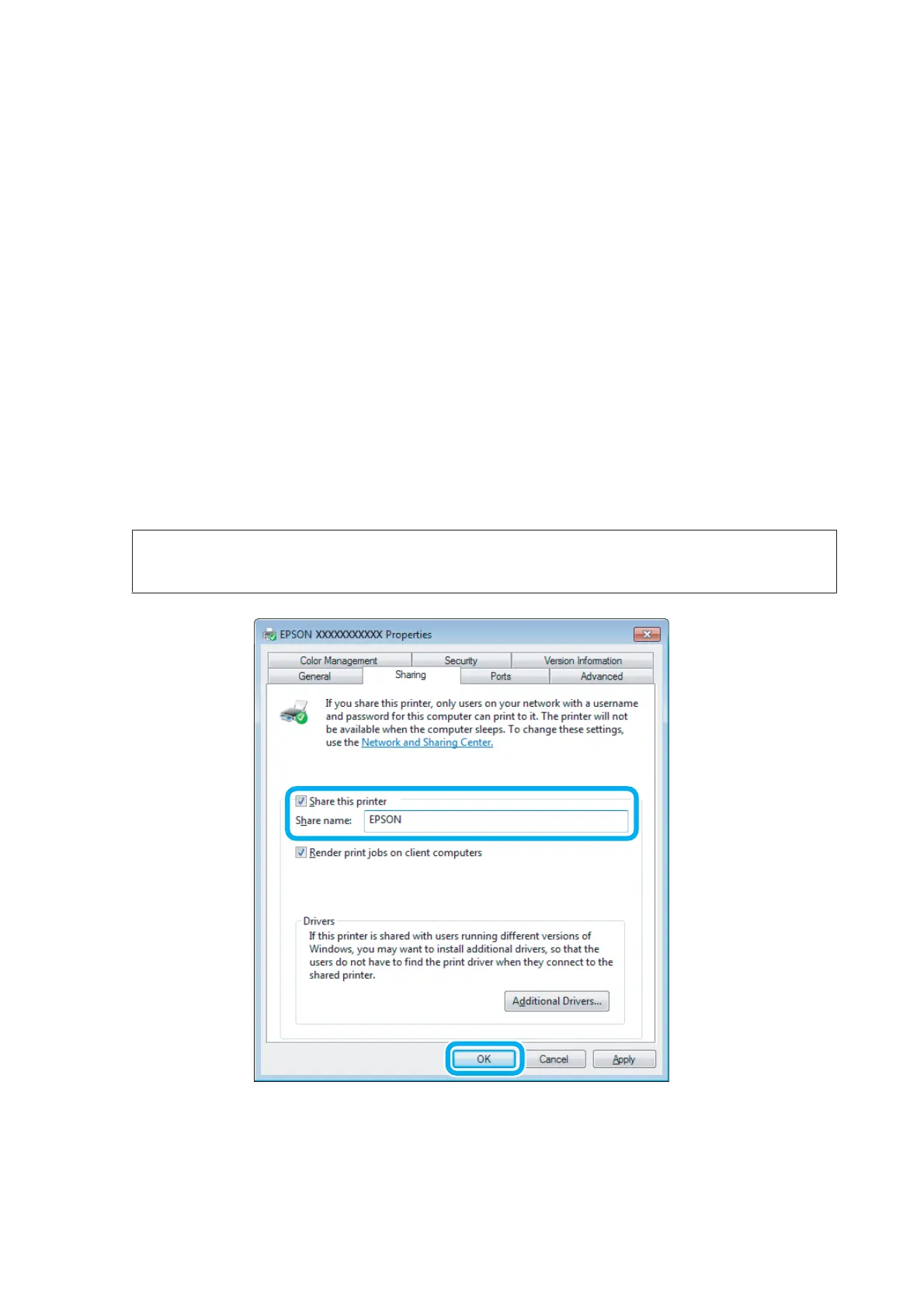 Select Share this printer, then type a Share name.