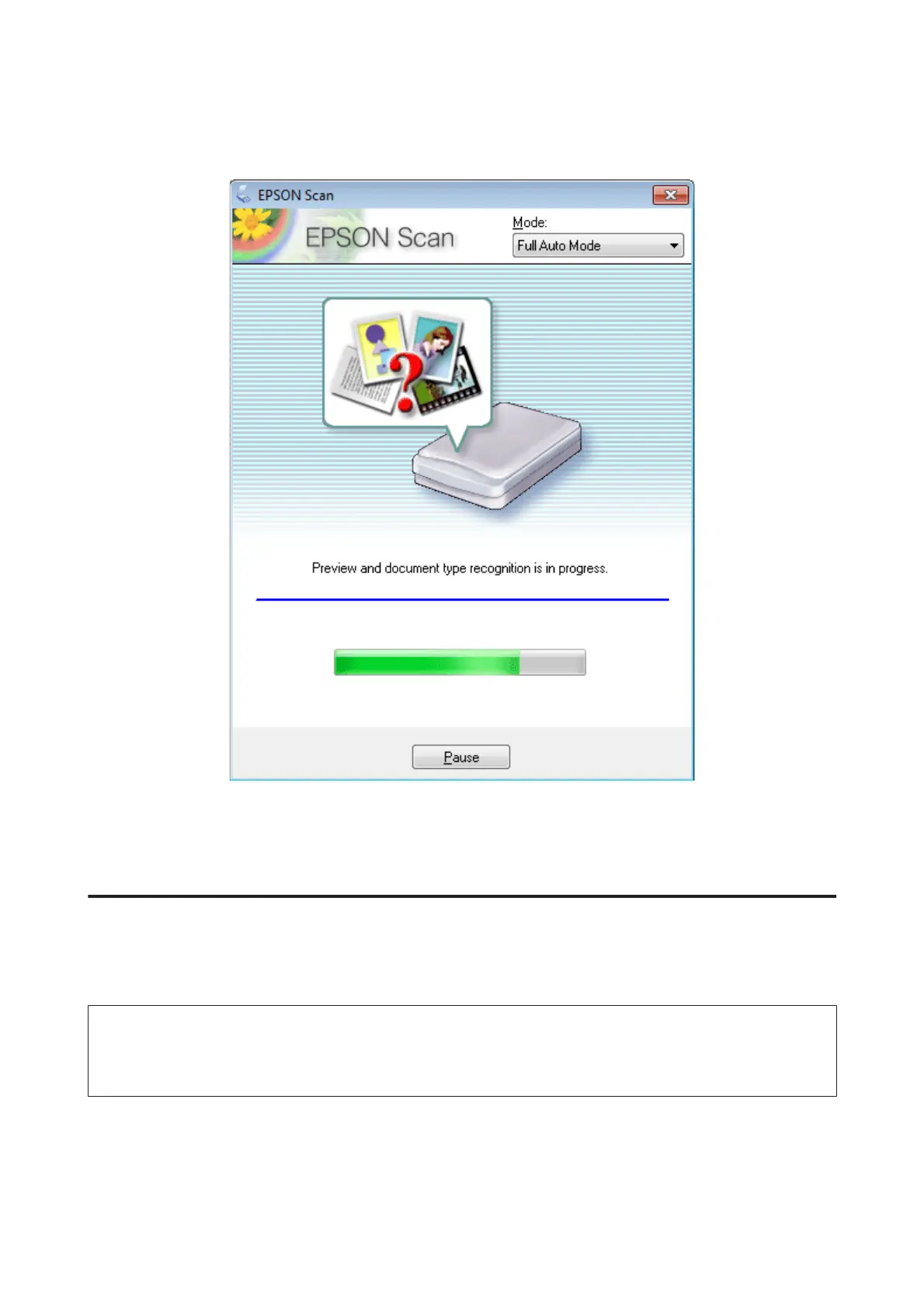 Click Scan. Epson Scan starts scanning in Full Auto Mode.
