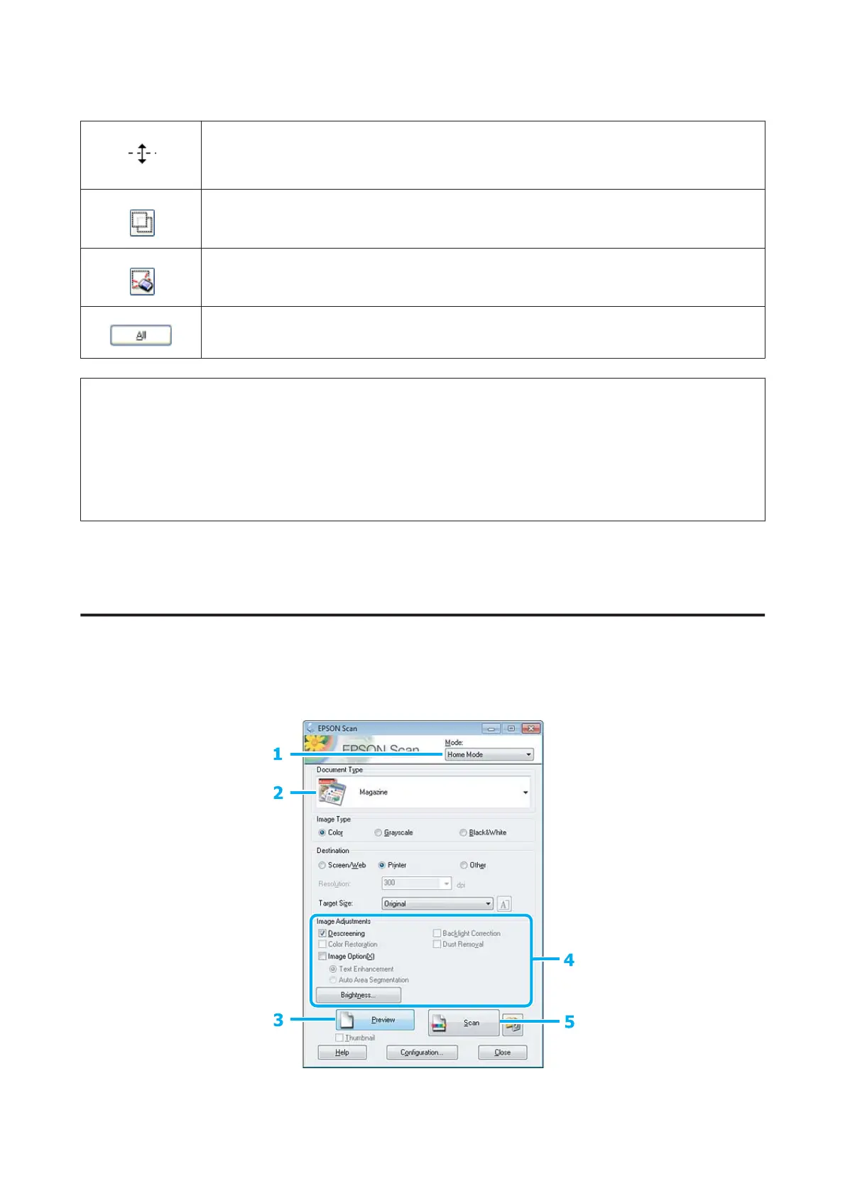 ❏ If you draw multiple marquees, make sure you click All in the Preview window before you scan. Otherwise, only the area