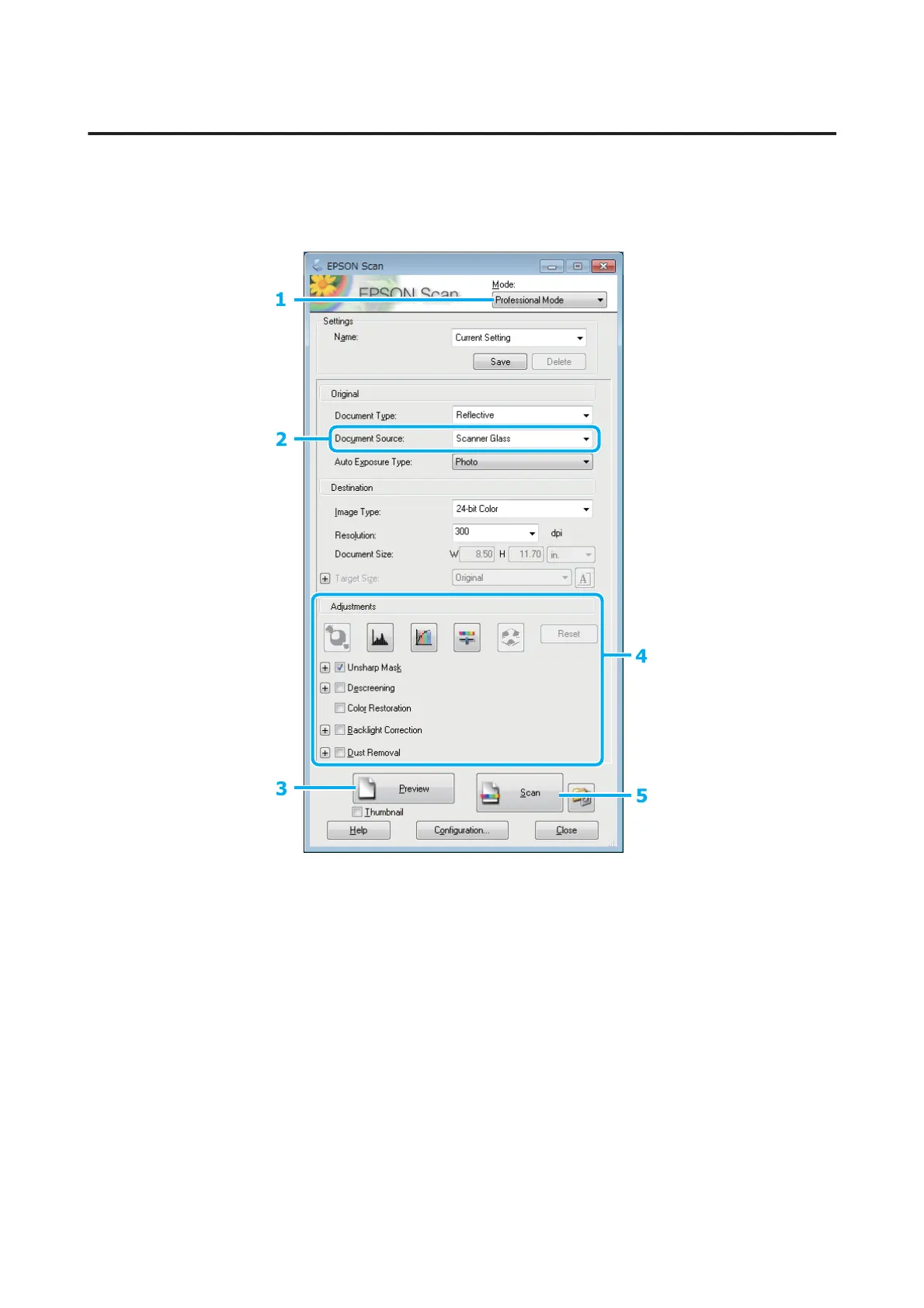 First of all, place your document and start Epson Scan.