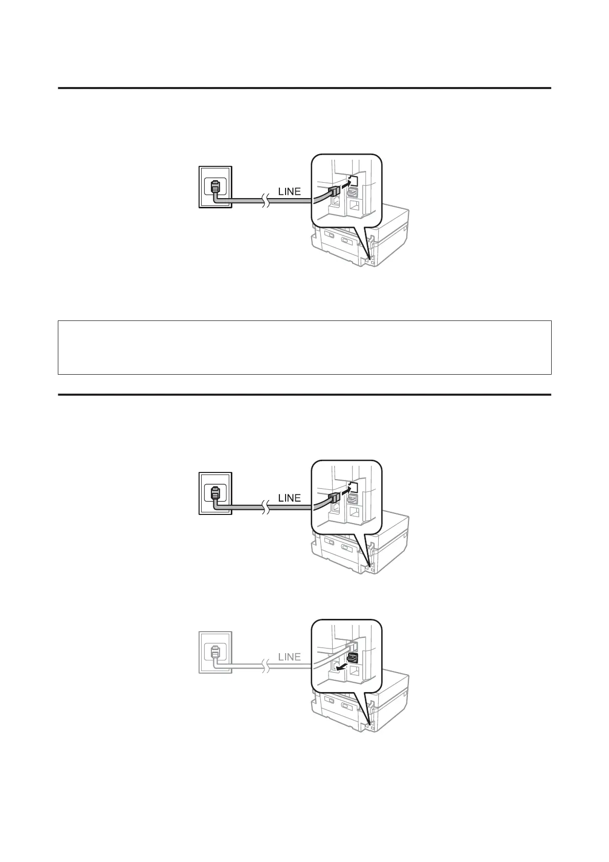 Connect a phone cable leading from a telephone wall jack to the LINE port.