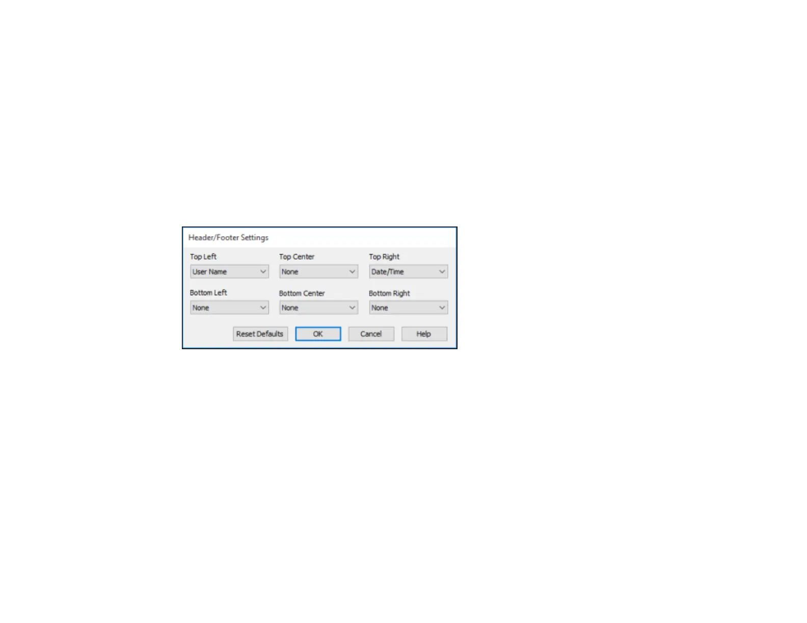 You can select any of the Header/Footer Settings options to add headers or footers when you print. The