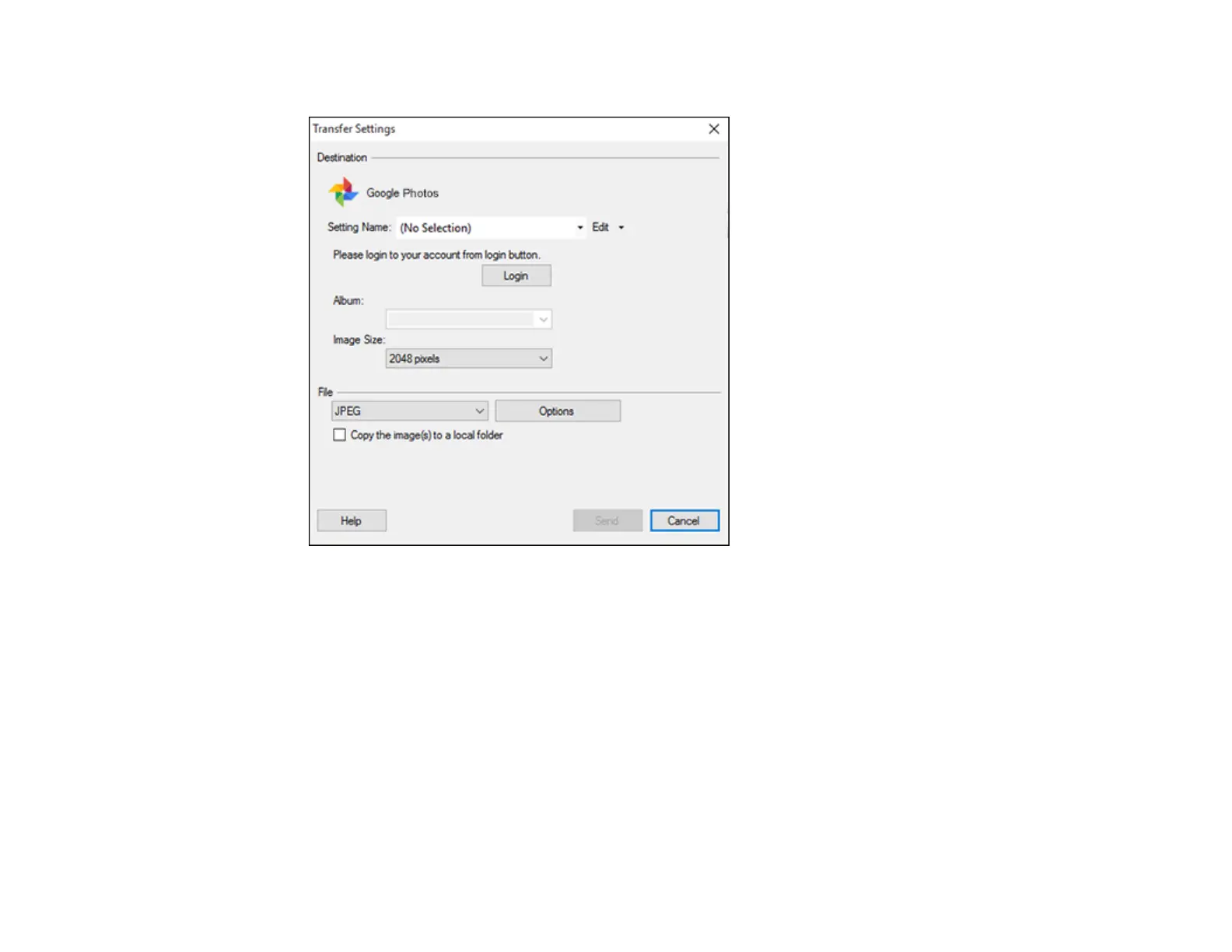 Note: If you have already configured a Google Photos account in Easy Photo Scan, you can select