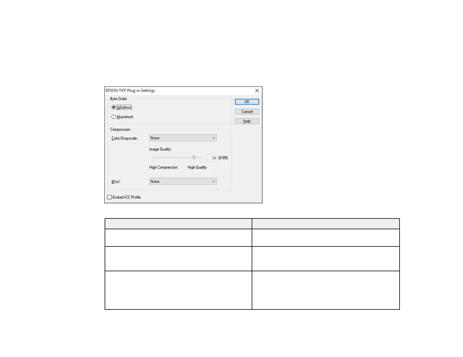 Epson TIFF and Multi-TIFF File Settings