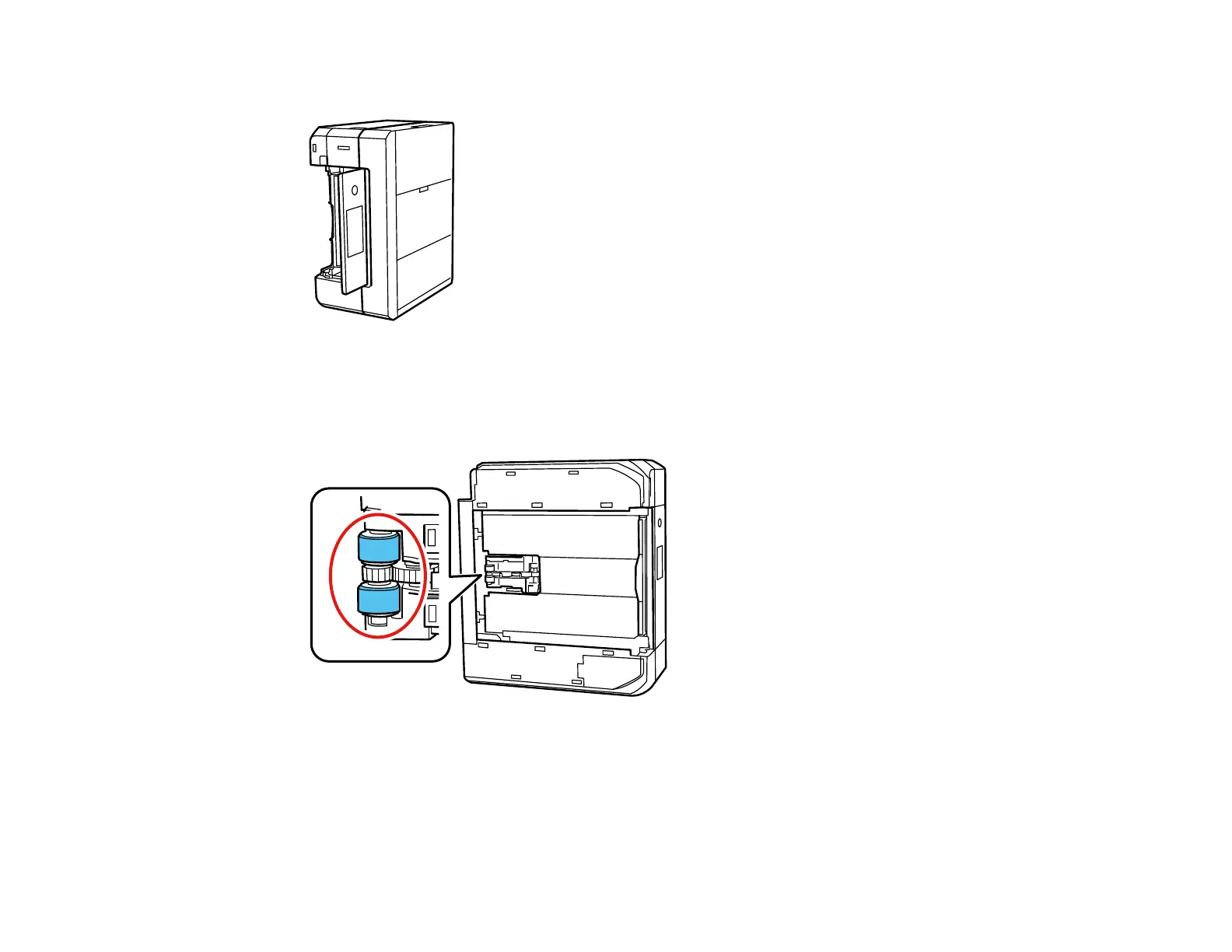6. Use a soft, moist cloth to clean the cassette rollers shown here. Gently rotate the rollers to clean
