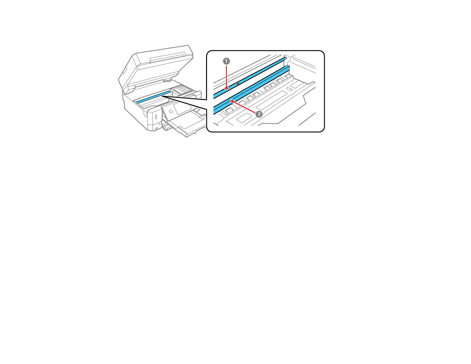 Caution: Do not touch the print head rail or you may not be able to print. Do not wipe off the grease
