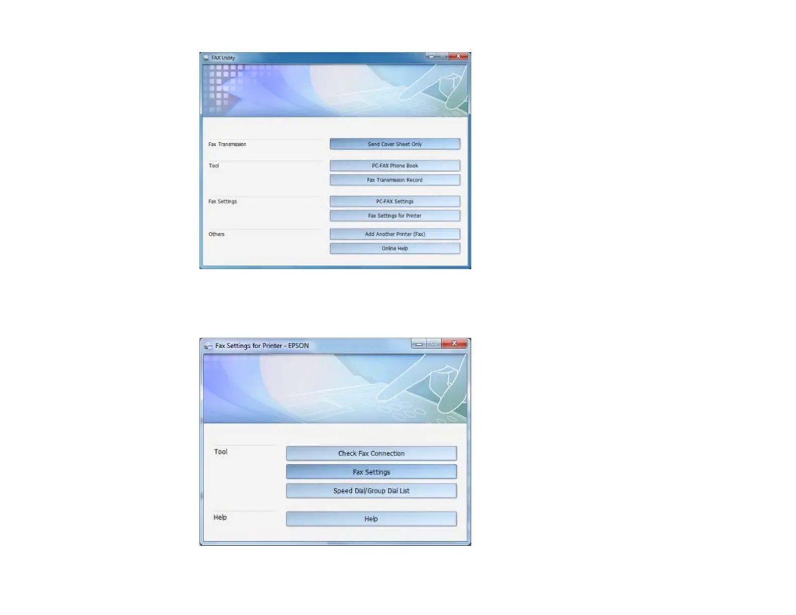 5. Select Fax Settings for Printer. (Select your product, if prompted.)