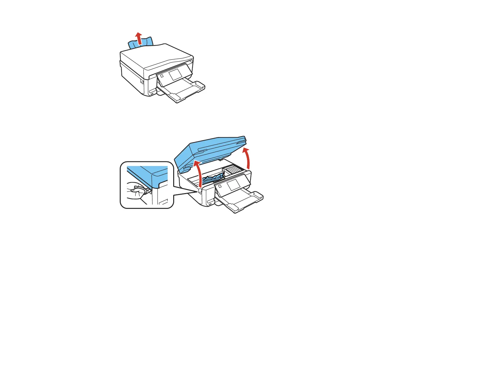 3. Lift the scanner unit and remove any jammed paper inside.