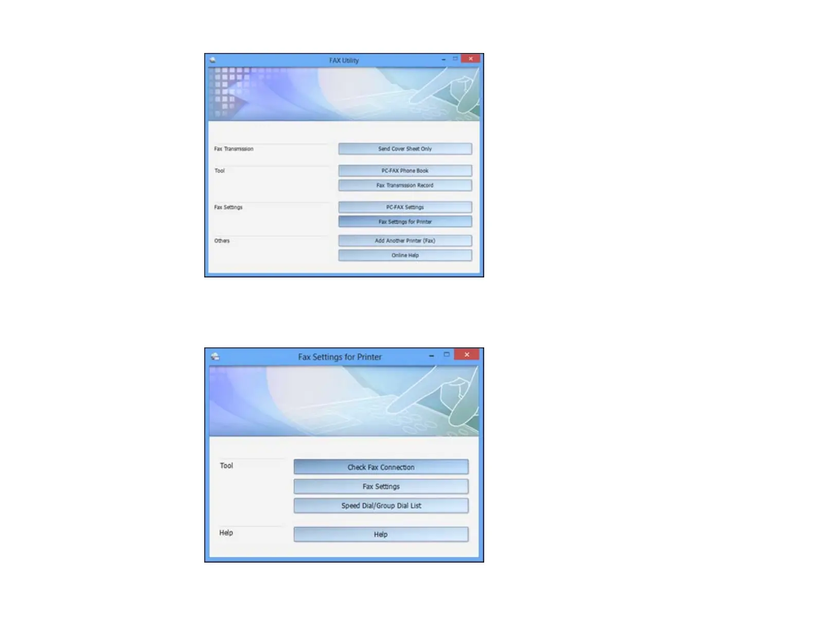 3. Select Fax Settings for Printer. (Select your product, if prompted.)