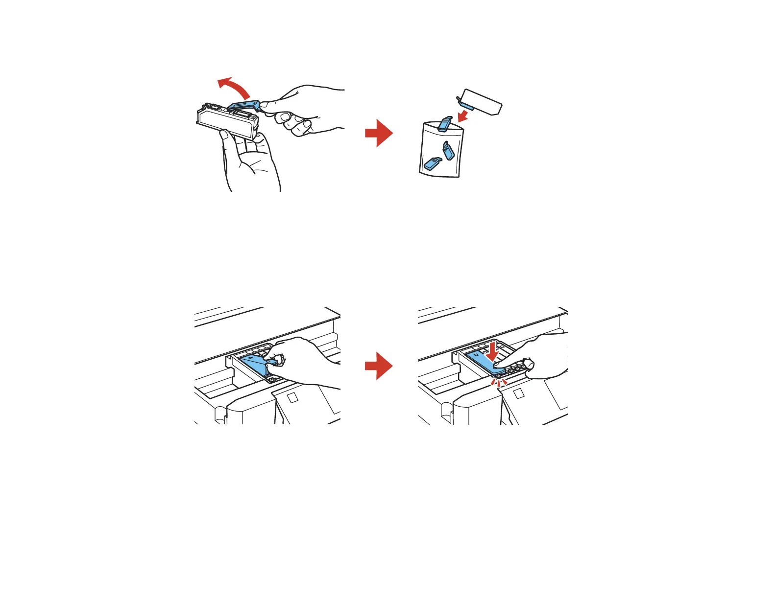 9. Insert the ink cartridge head first into the ink cartridge holder. Then press the bottom of the ink