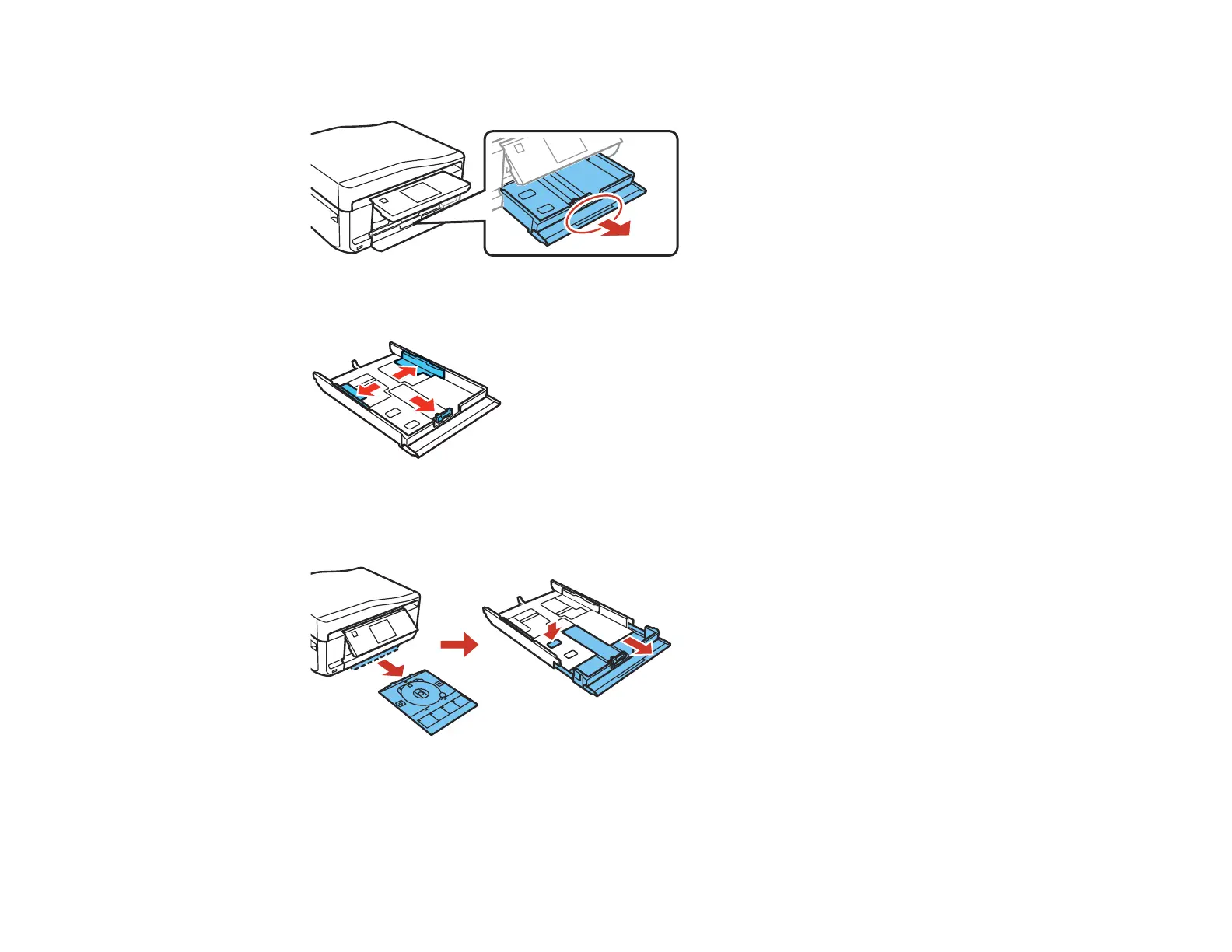 Note: If you are using legal-size paper, remove the CD/DVD tray from the product. Press the button