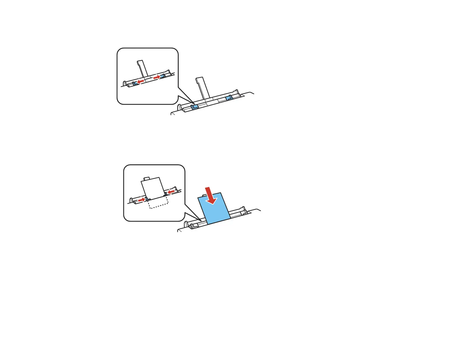 the rear paper feed slot. Slide the edge guides against the paper, but not too tightly.