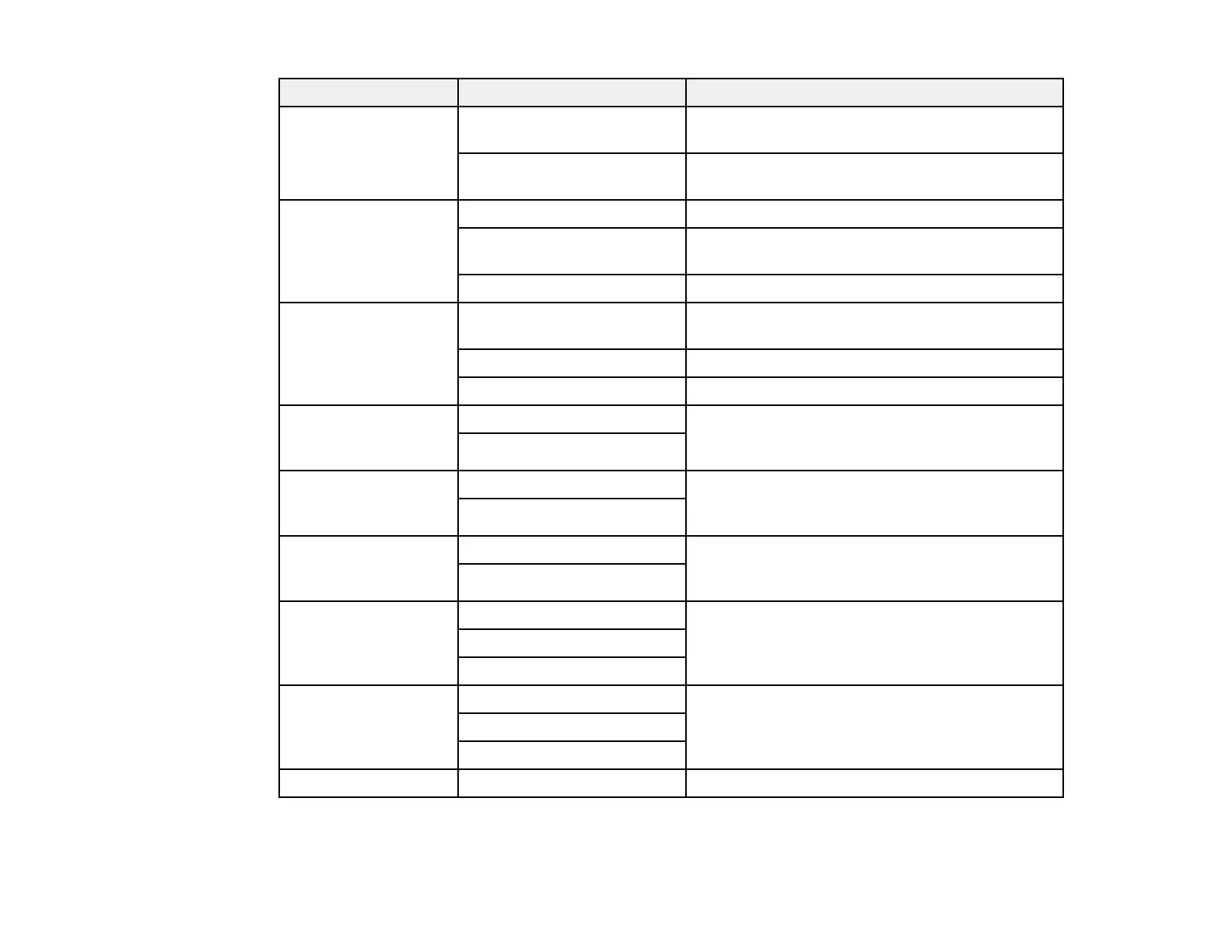 Copying option Available settings Description