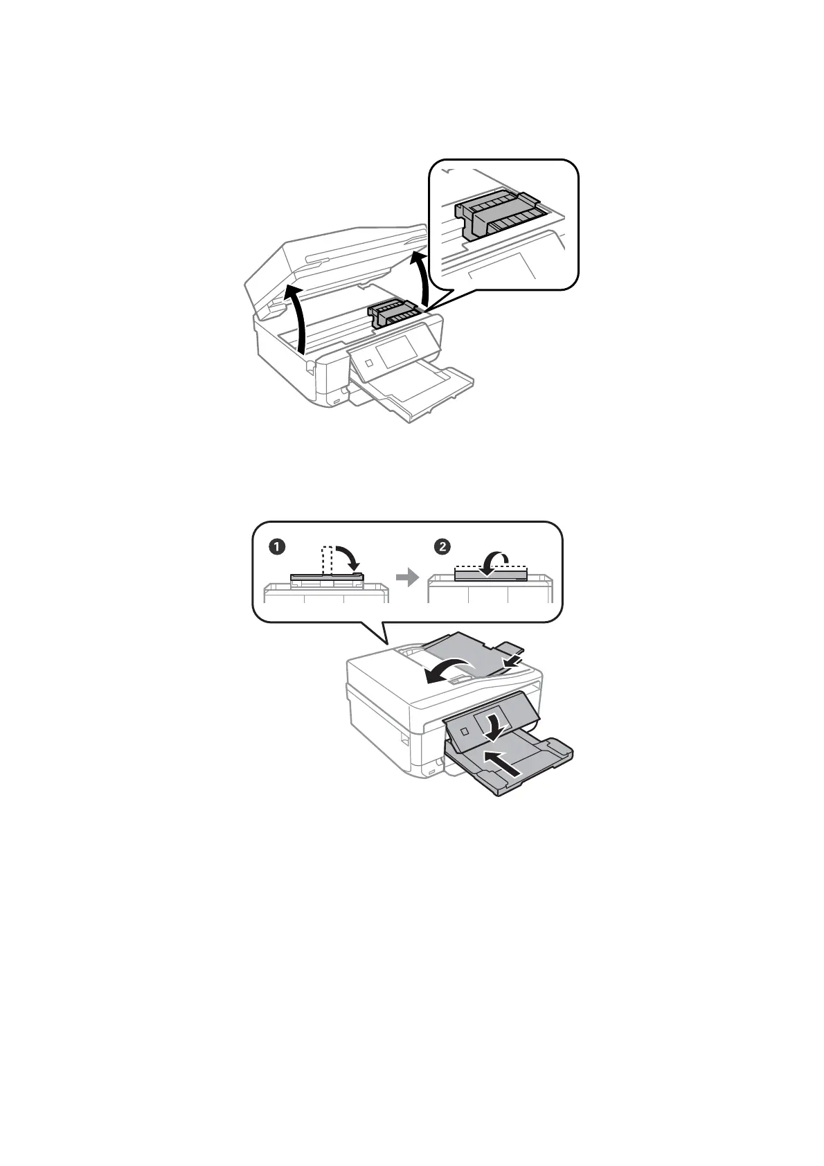7. Open the scanner unit with the document cover closed. Secure the ink cartridge holder to the case with tape.