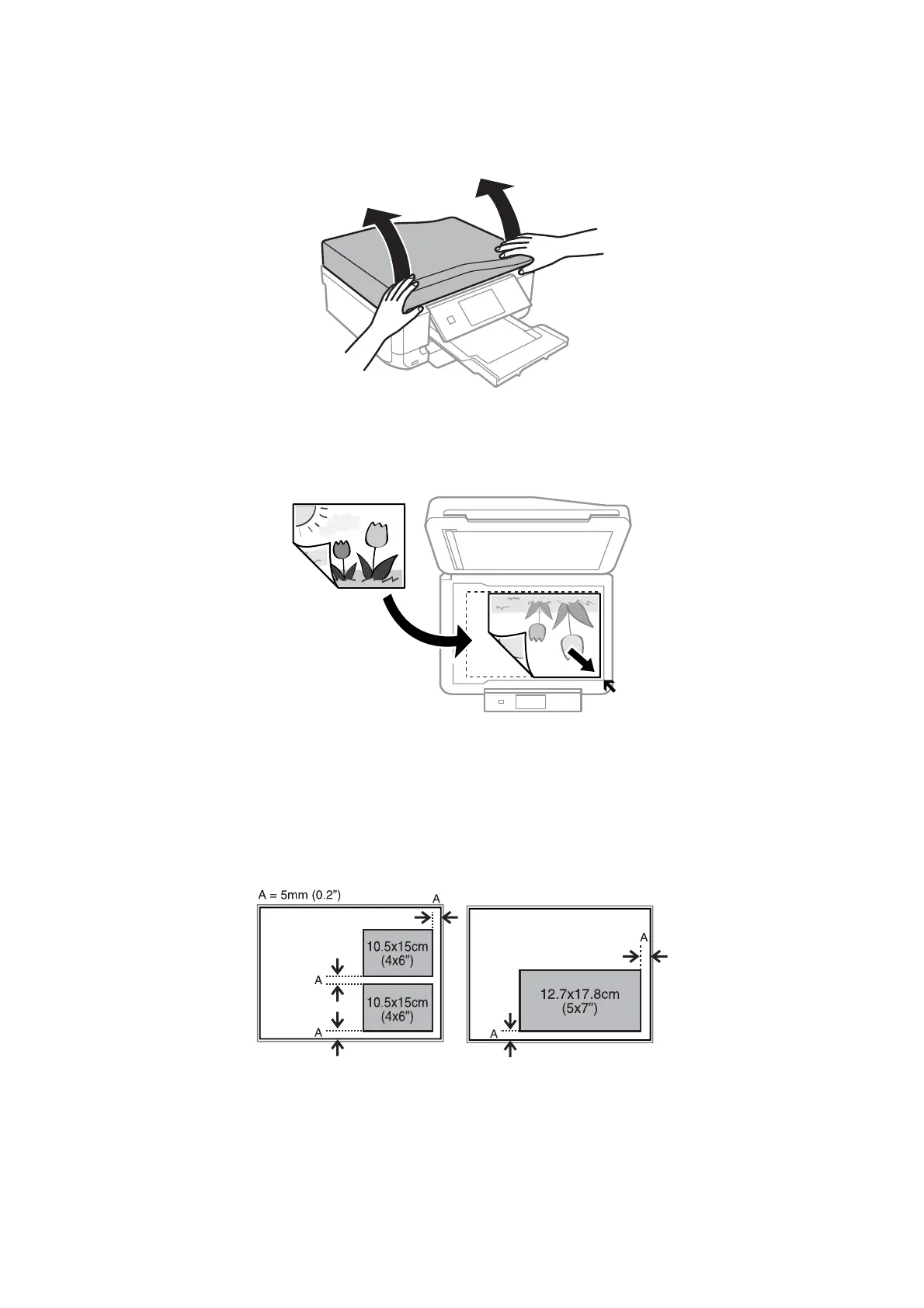 ❏ When copying photos, place the photos 5 mm away from the corner mark of the scanner glass.
