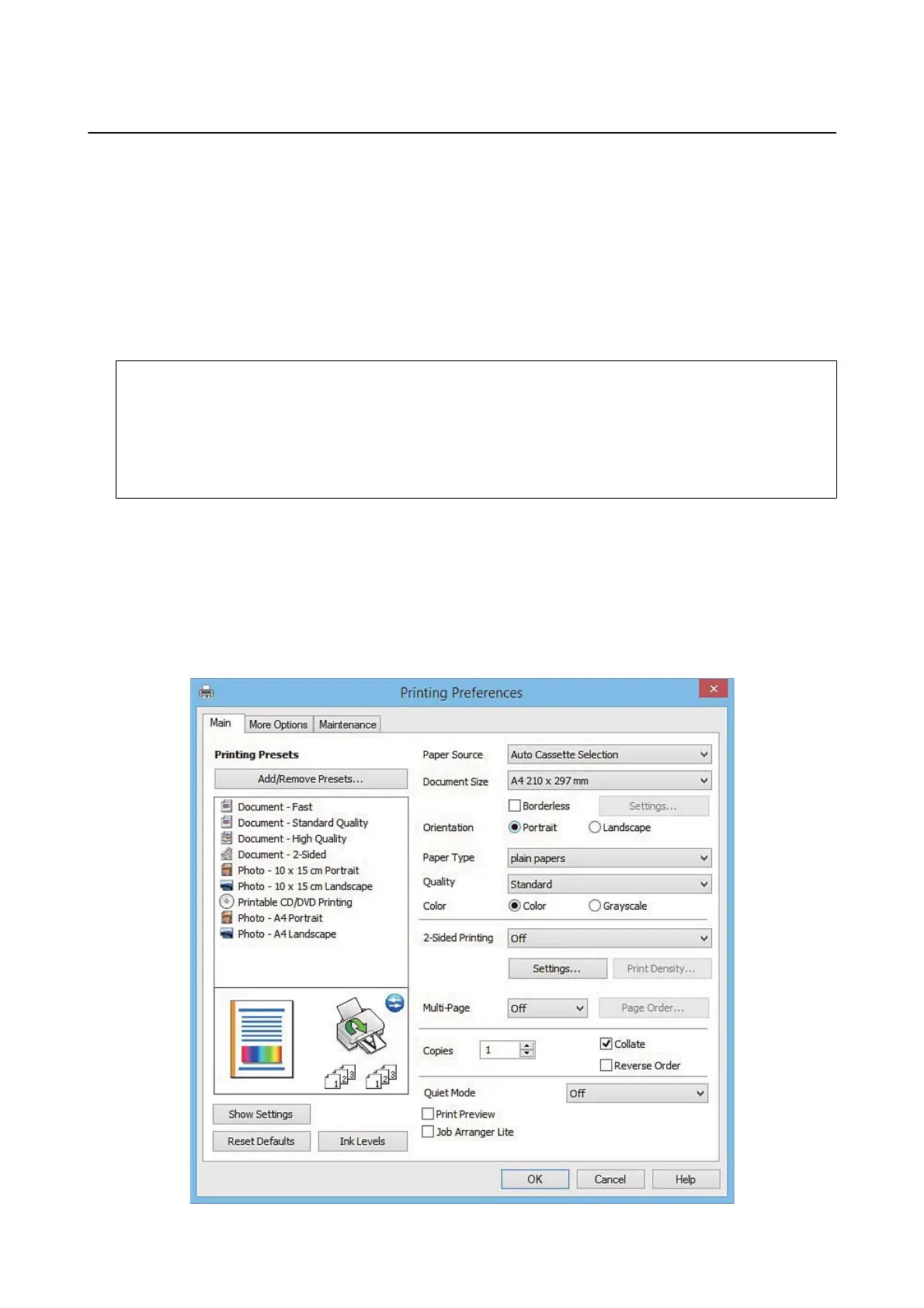 Select Preferences or Properties to access the printer driver window.