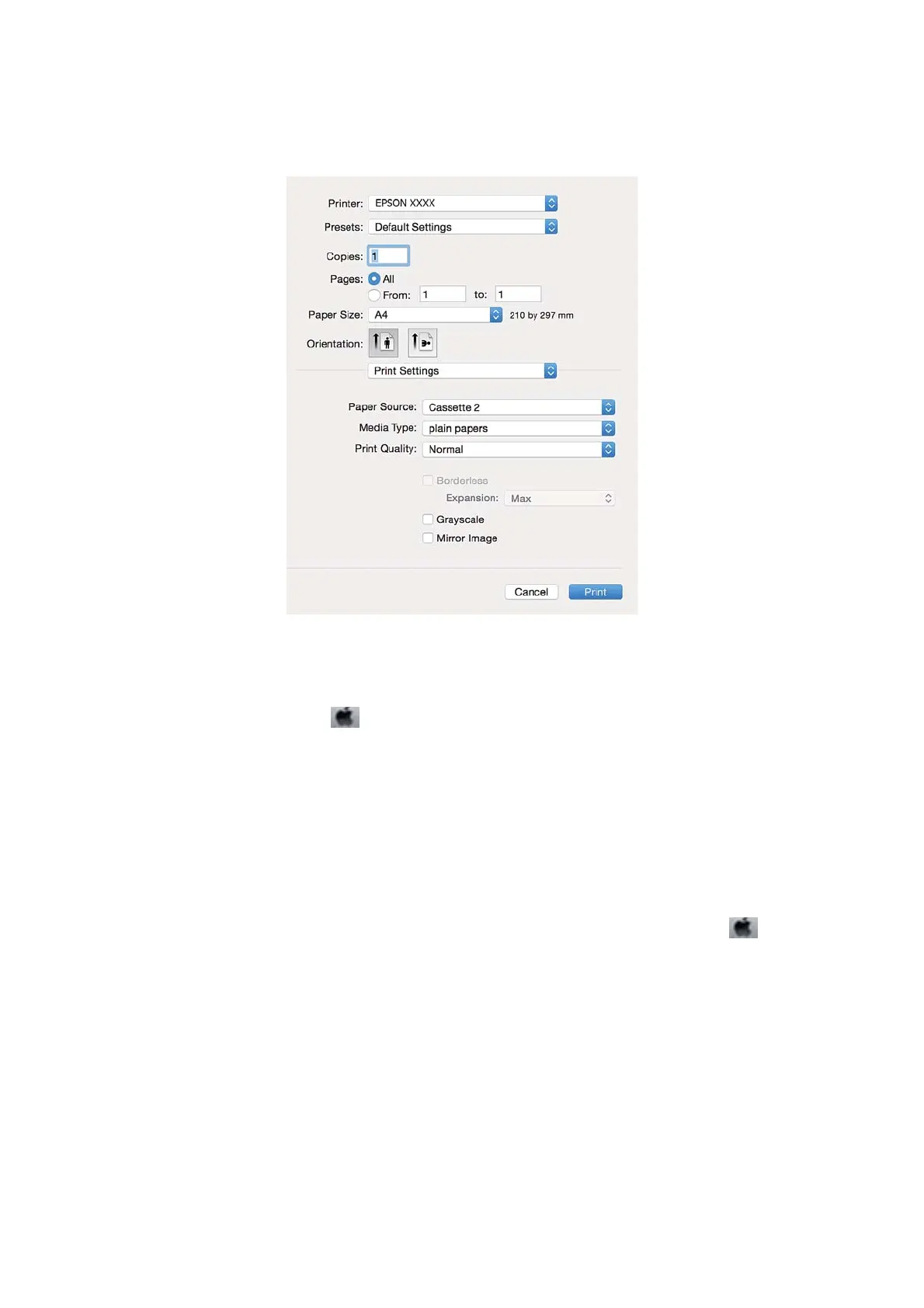 On Mac OS X v10.8.x or later, if the Print Settings menu is not displayed, the Epson printer driver has not been