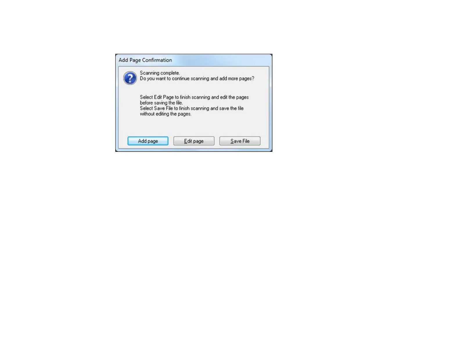 • If you need to scan additional pages in a document, click Add page. Place additional pages on