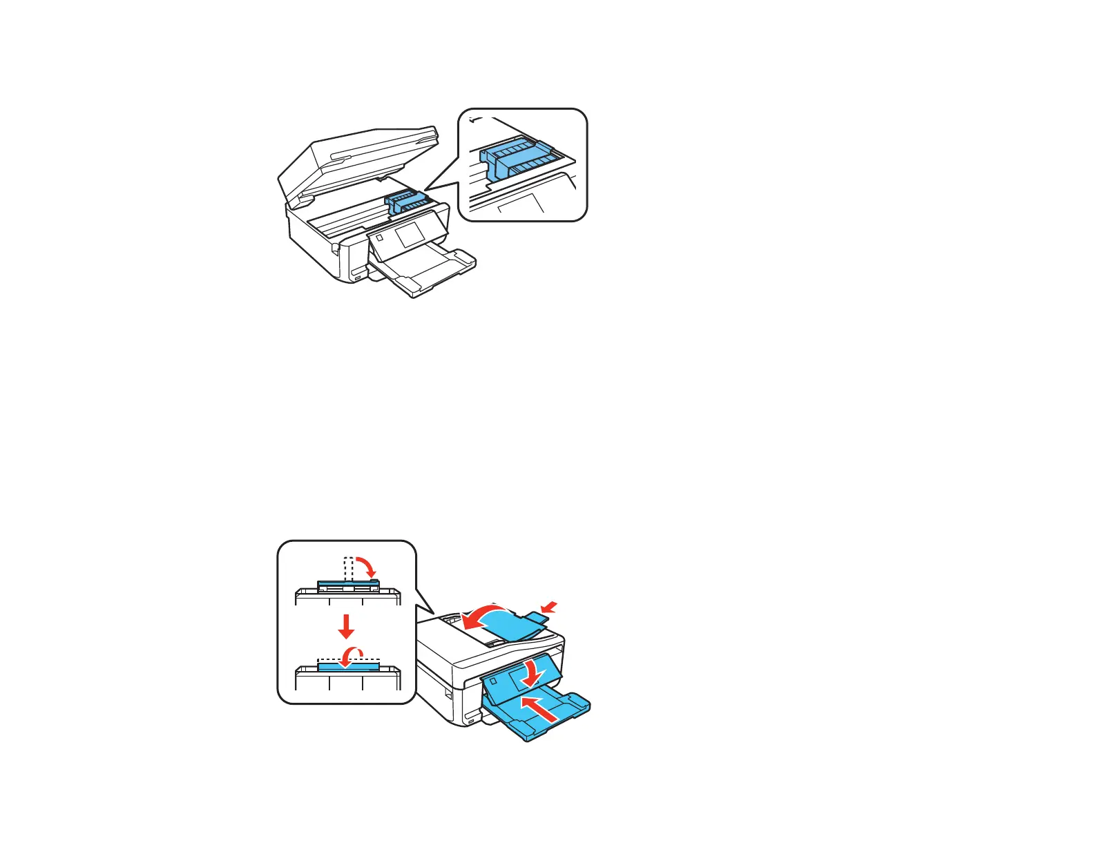 8. Close the rear paper feed slot cover, the output tray, the ADF input tray, and the ADF output tray