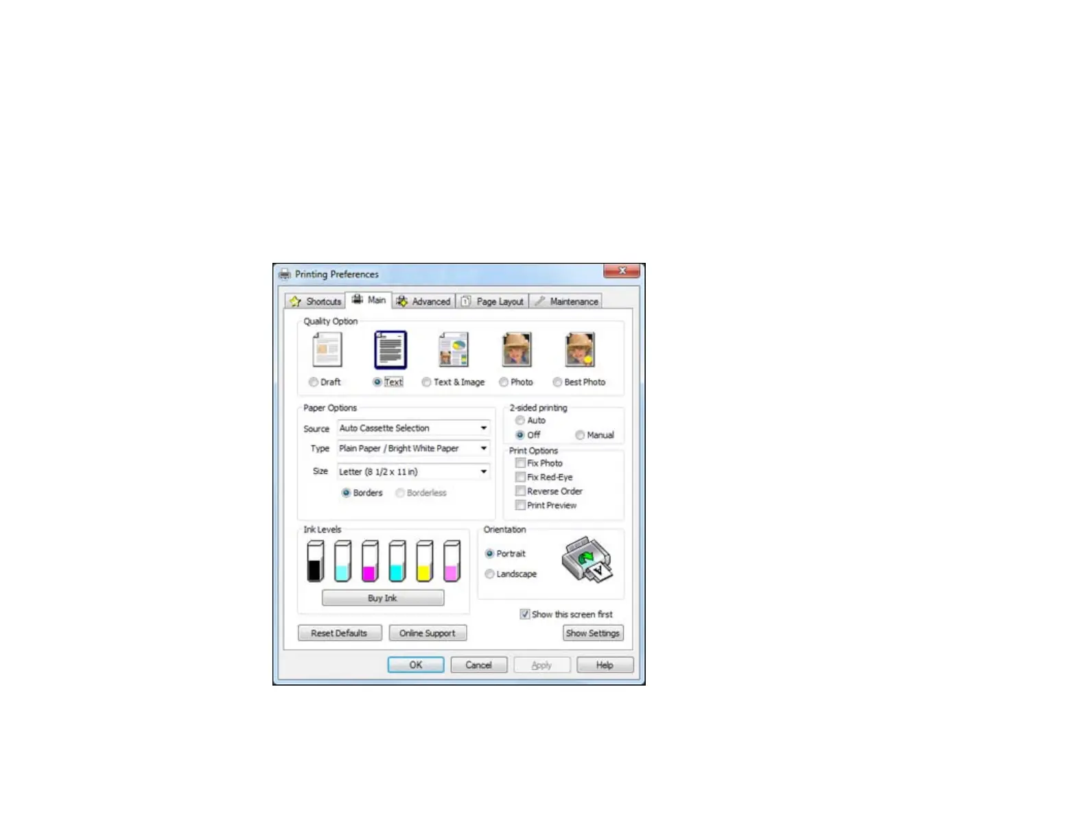 Note: You may also need to select Properties or Preferences to view your print settings.