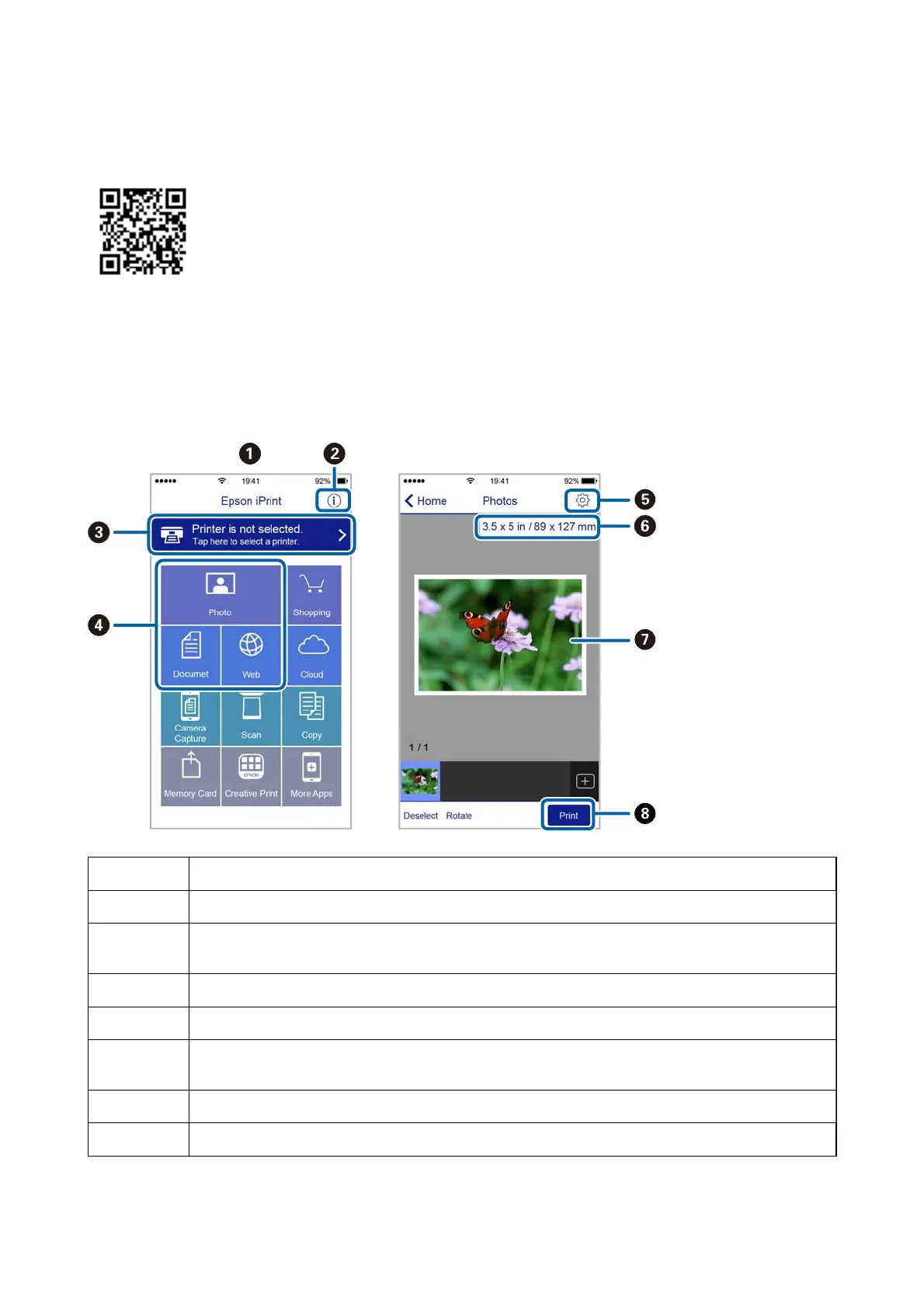 Start Epson iPrint from your smart device and select the item you want to use from the home screen.