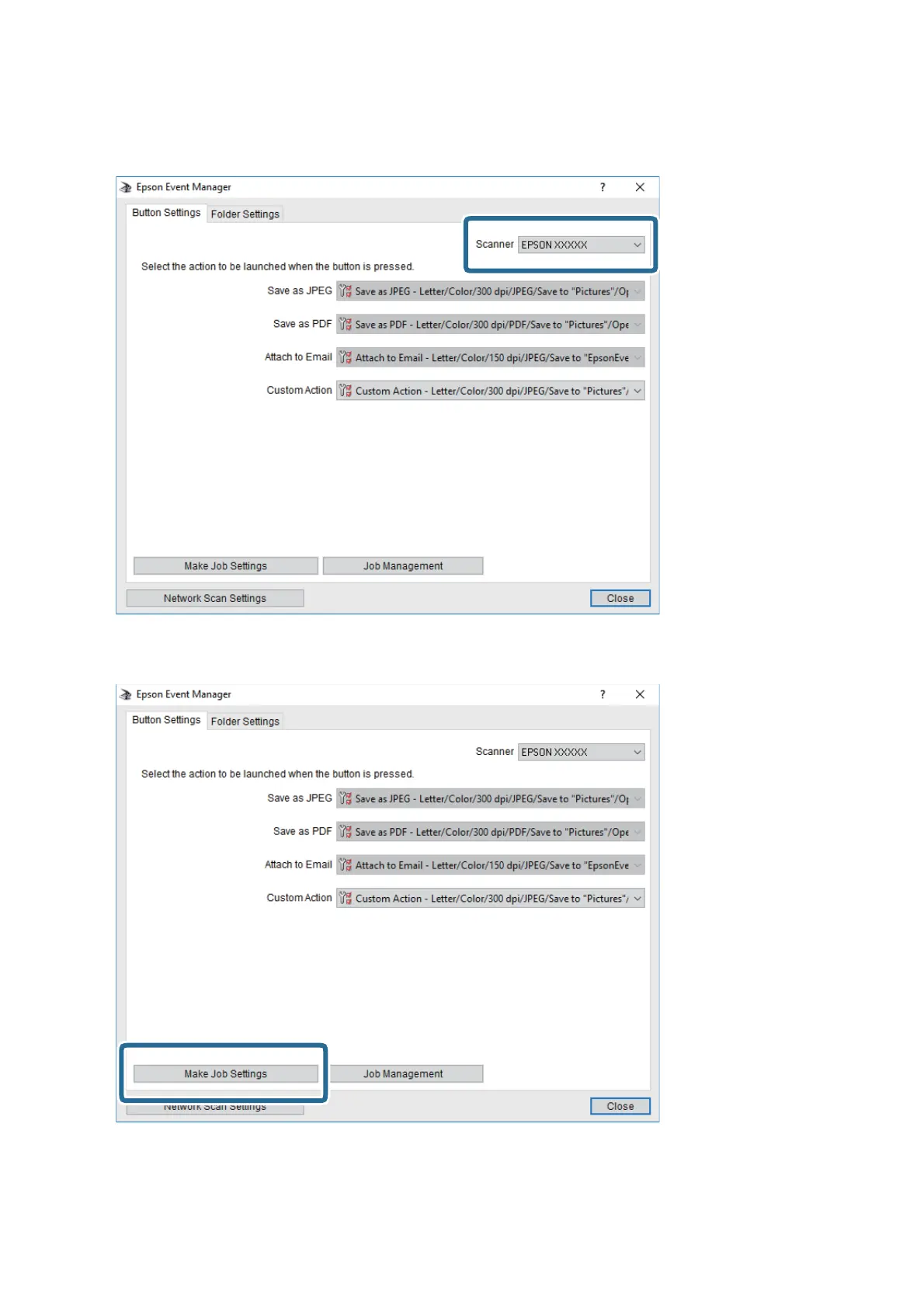 2. Make sure that your scanner is selected as the Scanner on the Button Settings tab on the main screen.