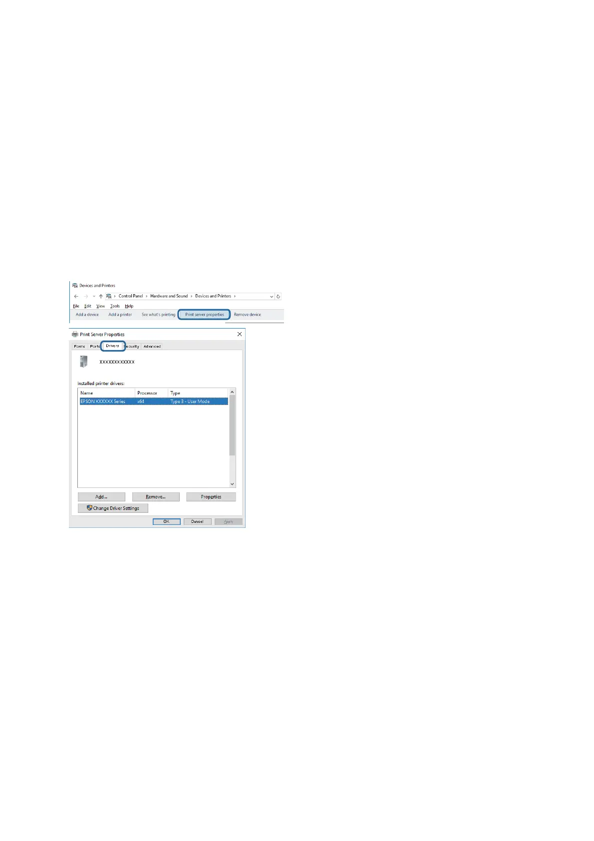 Select Control Panel > Vi e w d e v i c e s an d p ri n ter s (Printers, Printers and Faxes), and then do the following to