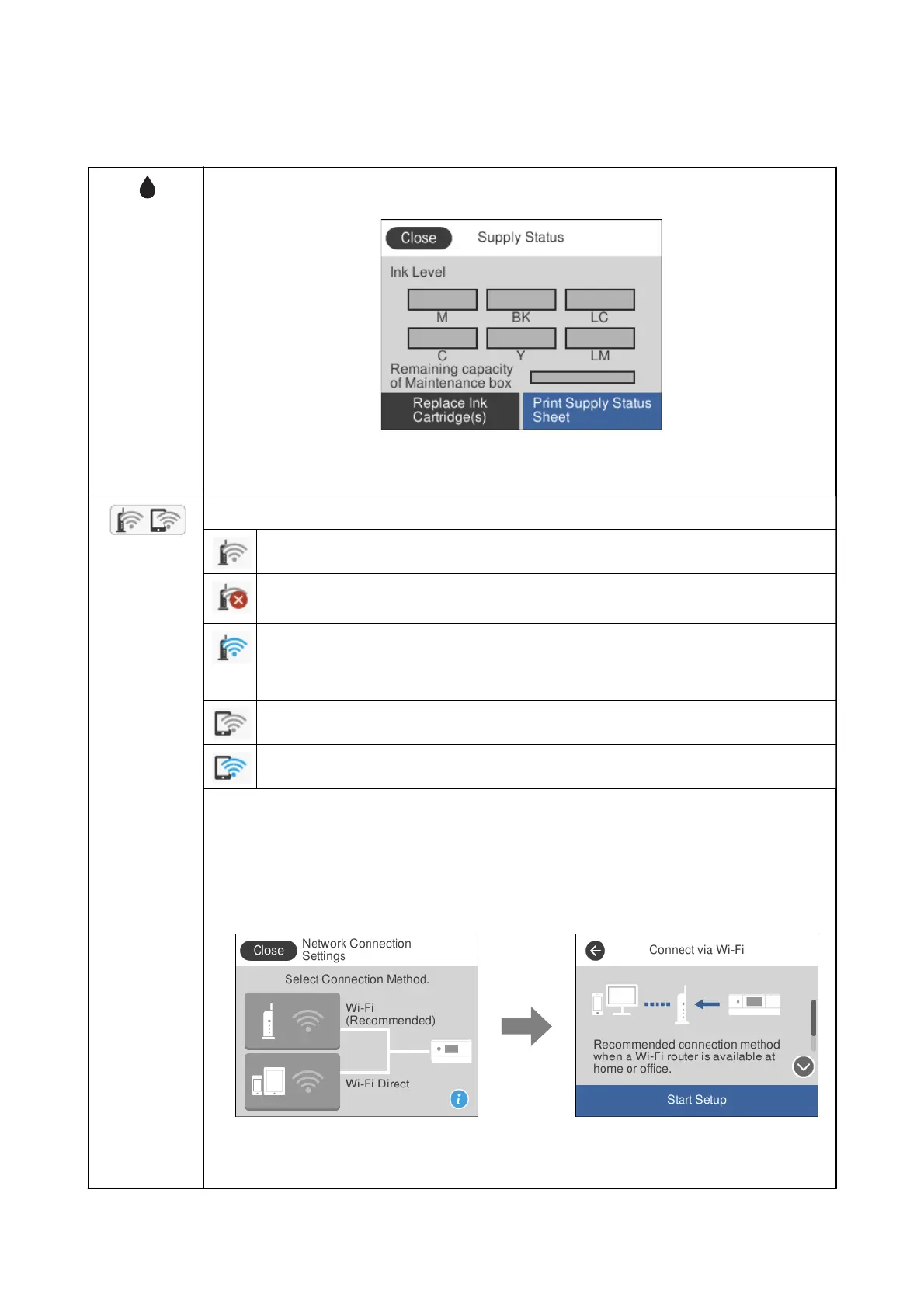 can also replace the ink cartridges or print the Supply Status Sheet.