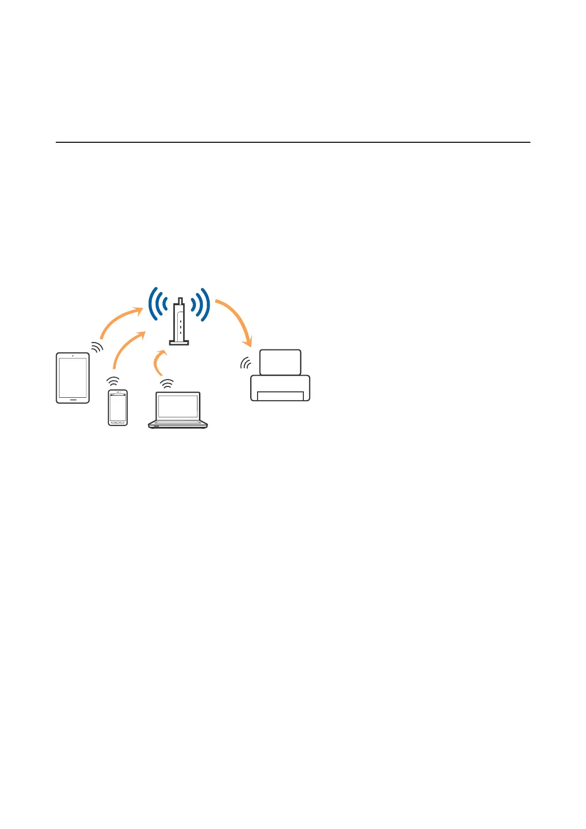Connect the printer and the computer or smart device to the access point. is is the typical connection method