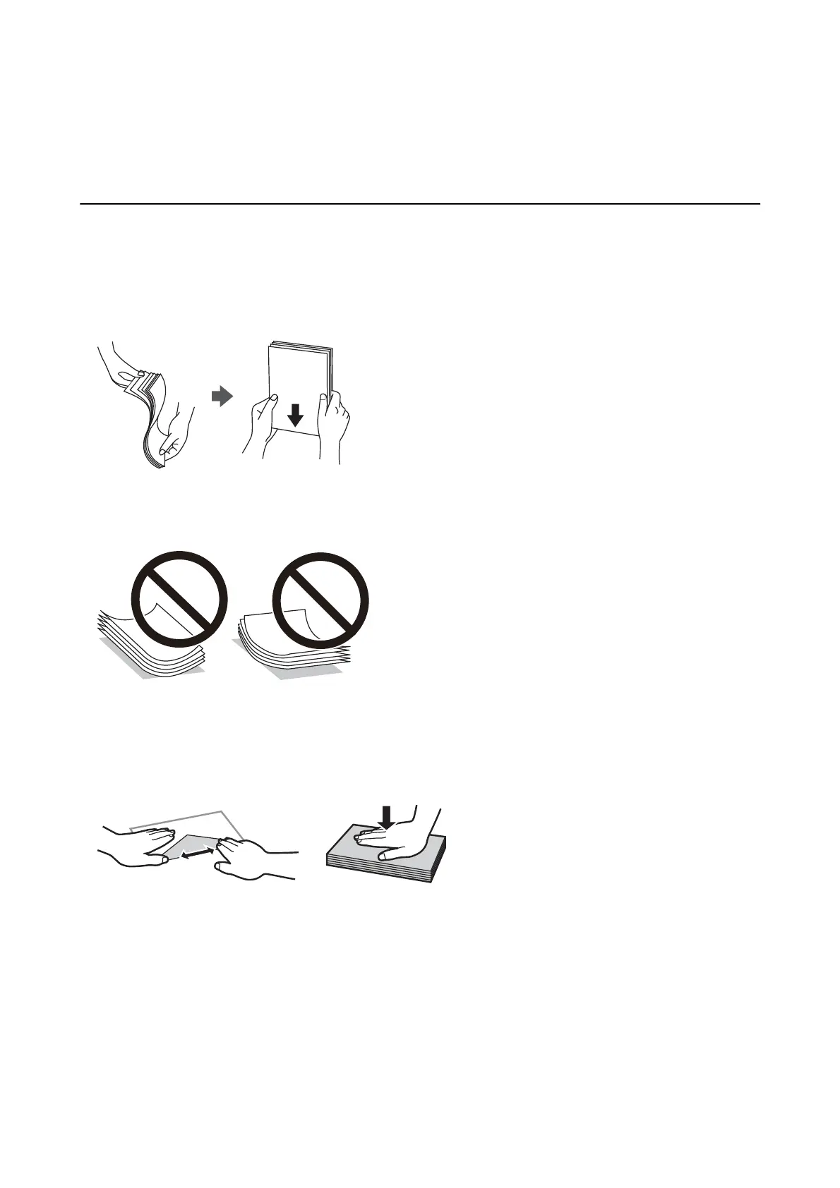 ❏ Fan and align the edges of the paper before loading. Do not fan or curl photo paper. Doing so may damage the