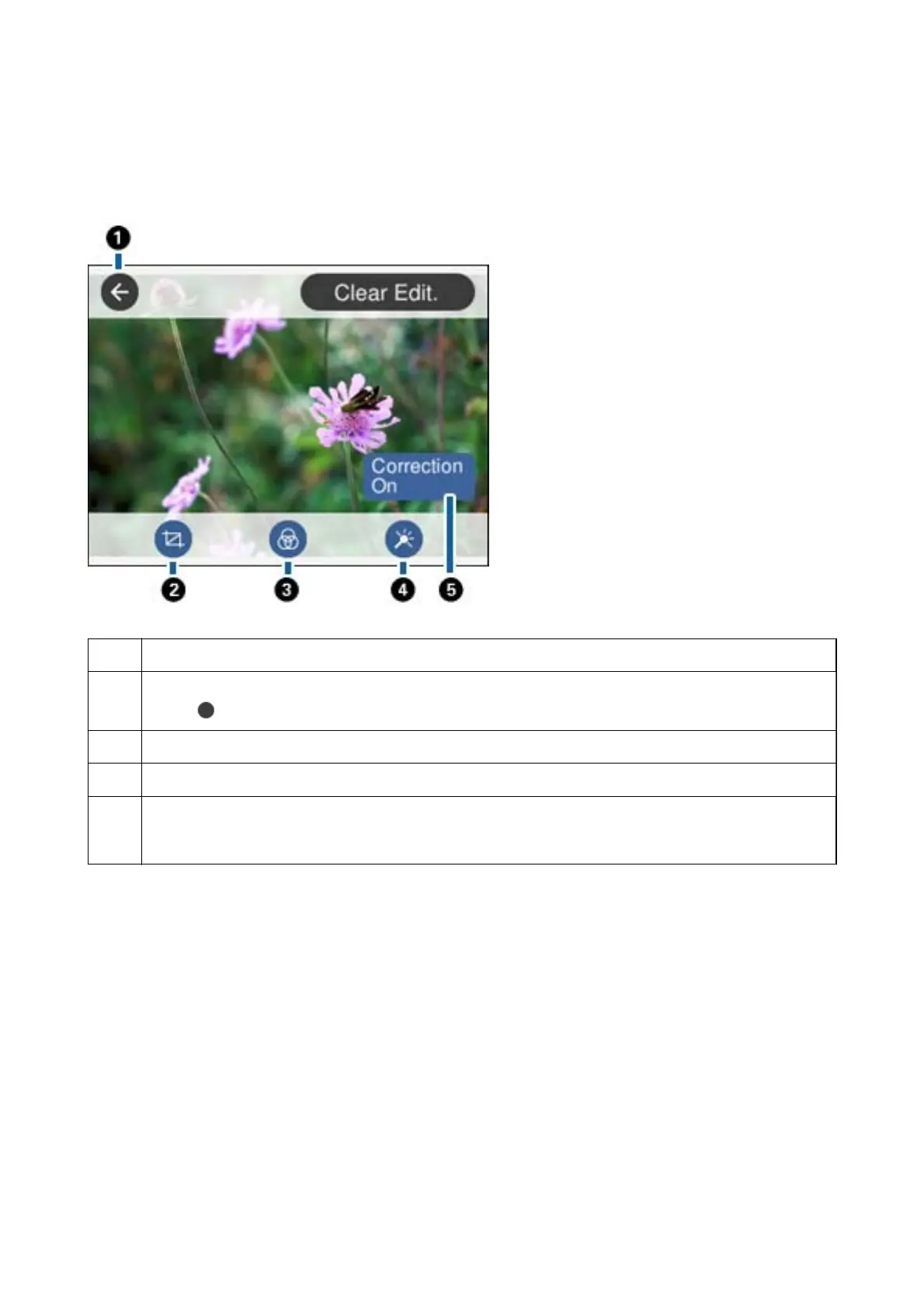 Tap Edit on the preview screen to display this screen. You can crop or rotate the photo or apply color correction.