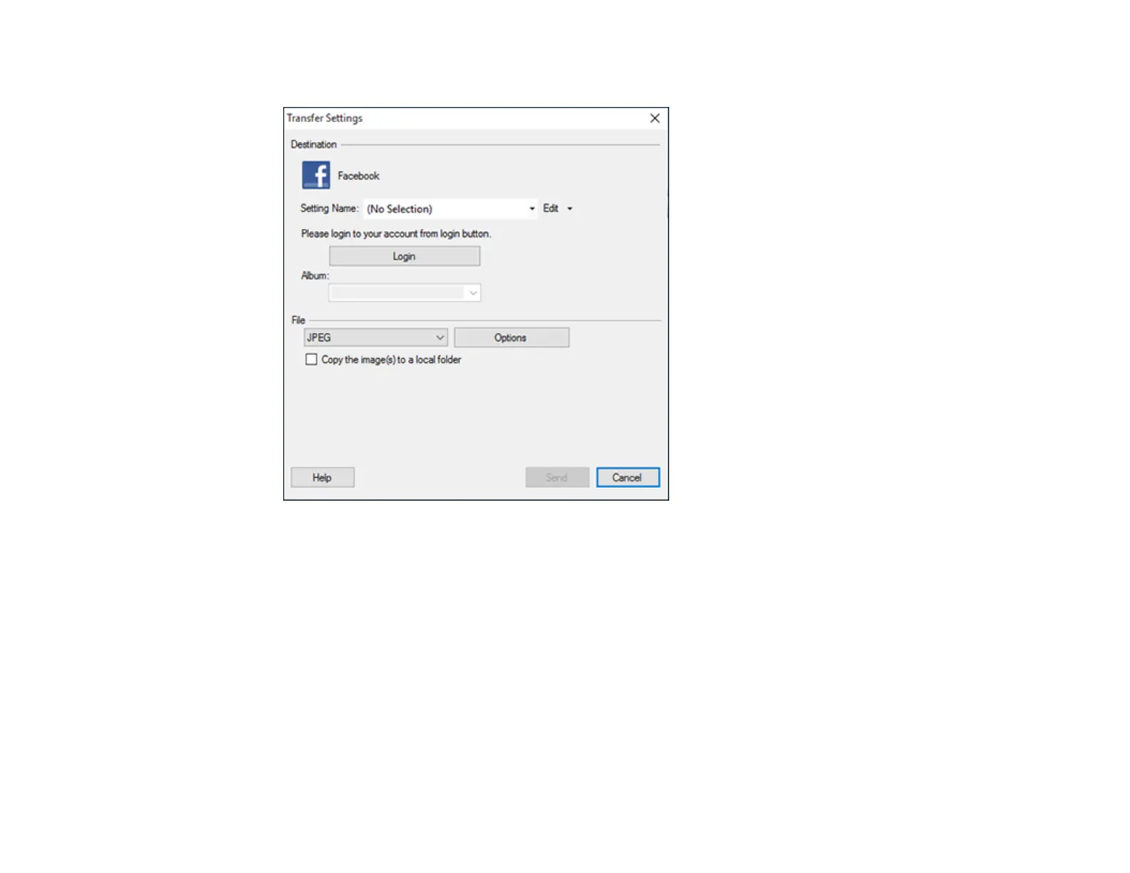 Note: If you have already configured a Facebook account in Easy Photo Scan, you can select the