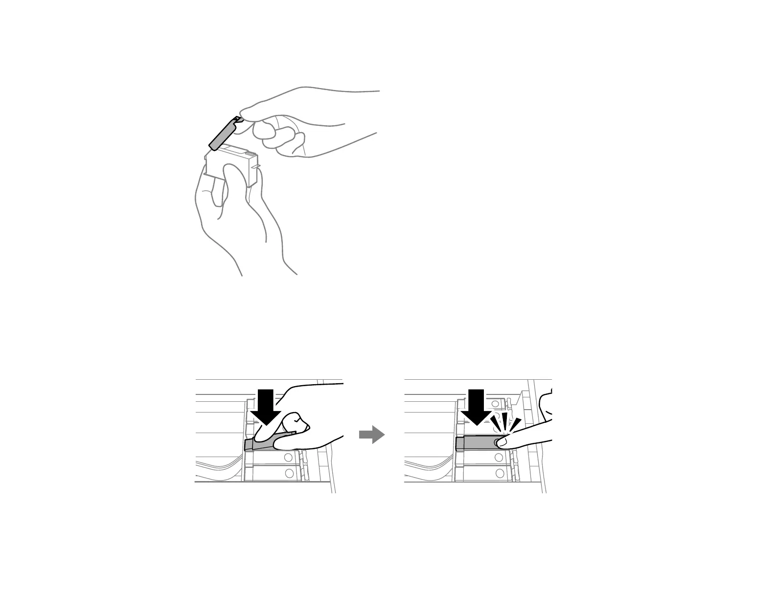 8. Insert the ink cartridge at a slight angle into the ink cartridge holder as shown. Then press the ink
