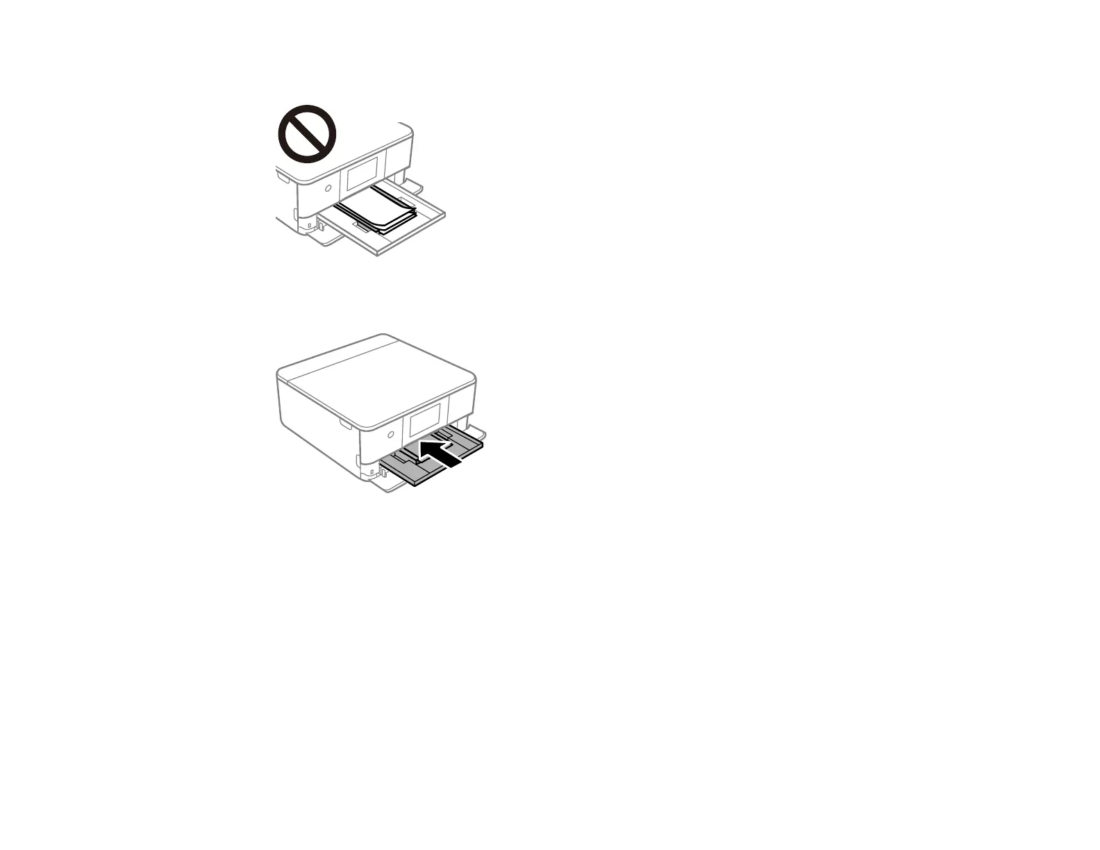 • Make sure the paper is under the tabs on the edge guides and not sticking out from the end of the