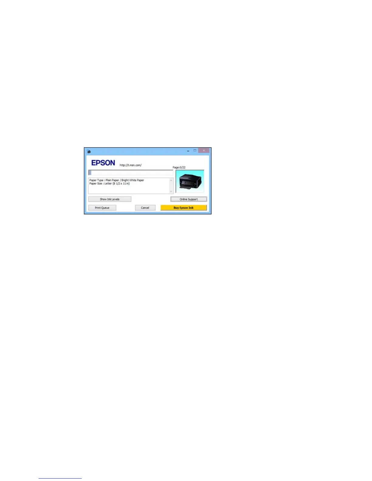During printing, you see this window showing the progress of your print job. It allows you to control