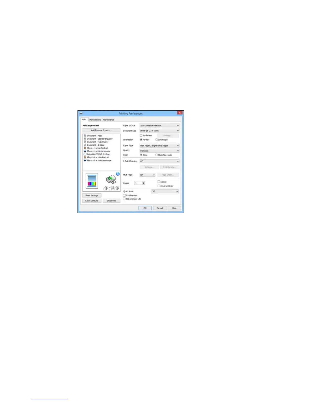 3. Select the print settings you want to use as defaults in all your Windows programs.