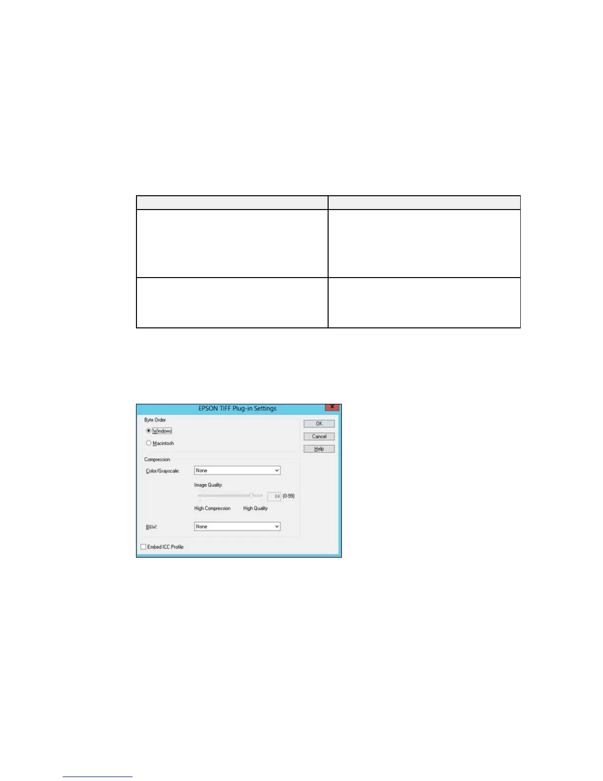 You can select from the following settings in the TIFF settings window in Easy Photo Scan.