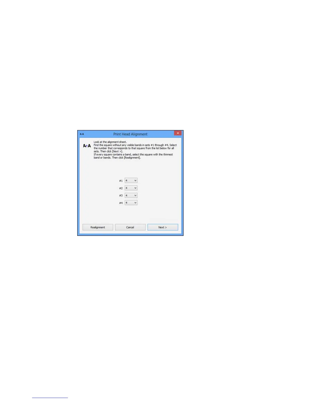Note: Do not cancel printing while you are printing a head alignment pattern.