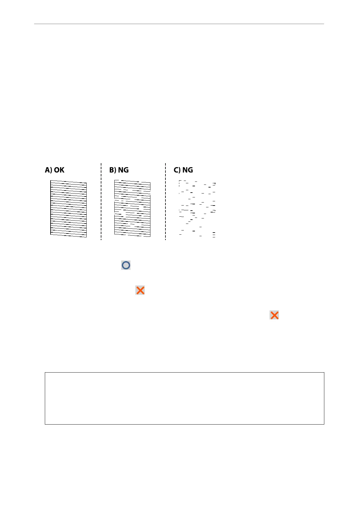 If most lines are missing or not printed, this indicates most nozzles are clogged. Select