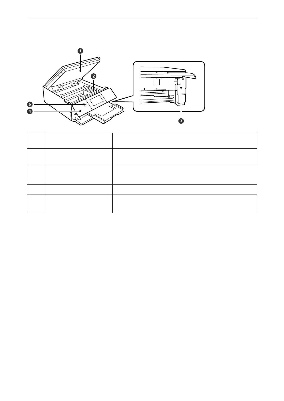 Scanner unit Scans placed originals. Open to replace the ink cartridges or to remove