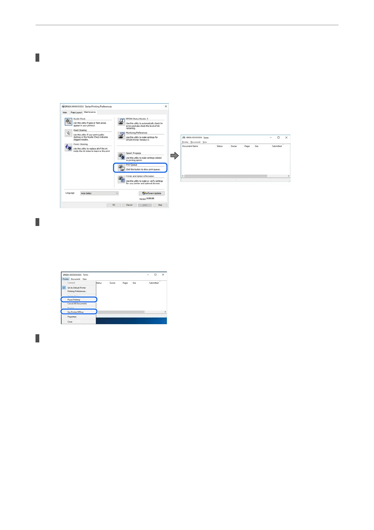 Click Print Queue on the printer driver's Maintenance tab. If unnecessary data remains, select Cancel all