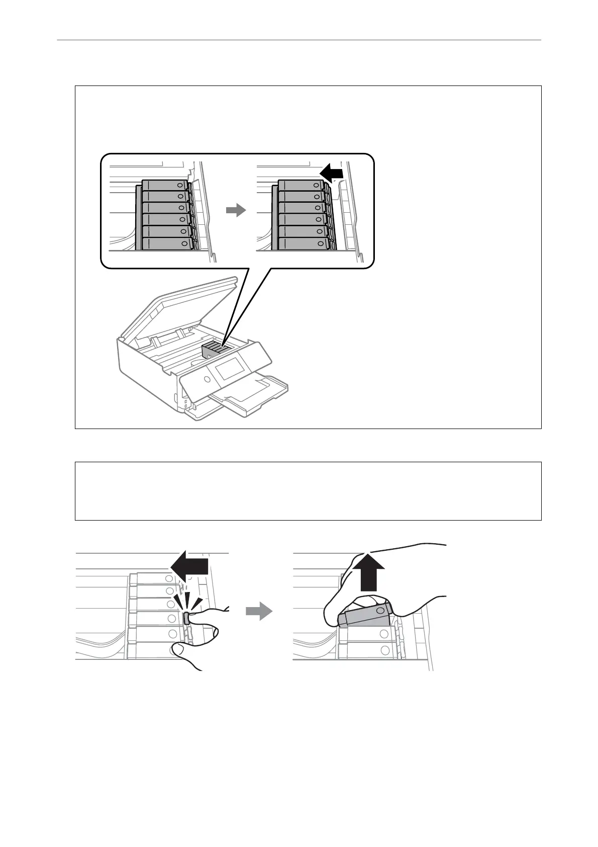 Push the tab to unlock the ink cartridge holder, and then remove the cartridge diagonally.