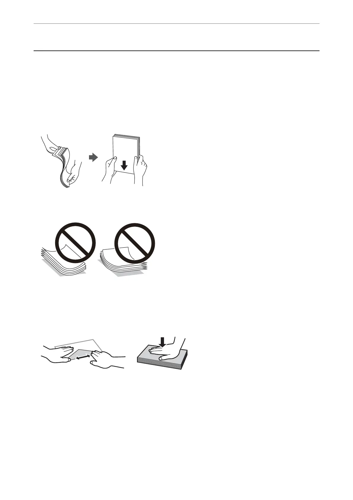 ❏ Fan and align the edges of the paper before loading. Do not fan or curl photo paper. Doing so may damage the
