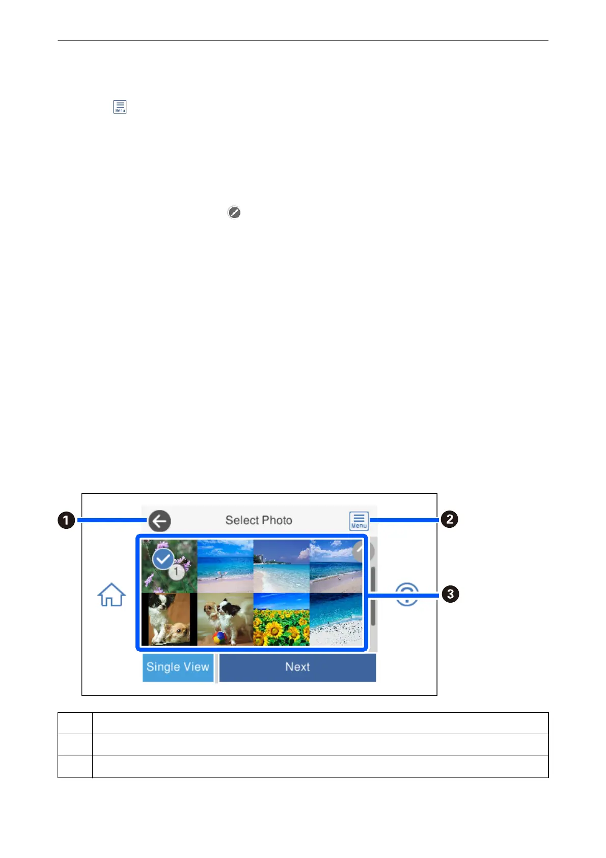 ❏ To change the number of prints, Select Single View, and then use - or +. If the icons are not displayed, tap anywhere
