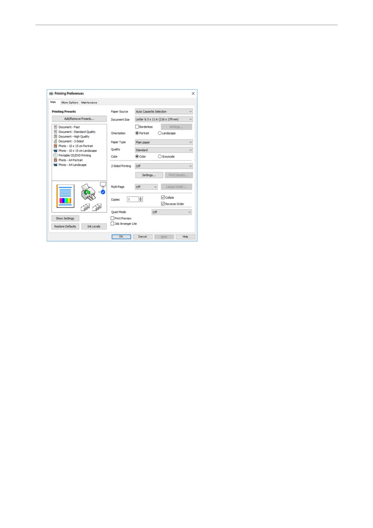 ❏ Color: Select Grayscale when you want to print in black or shades of gray.