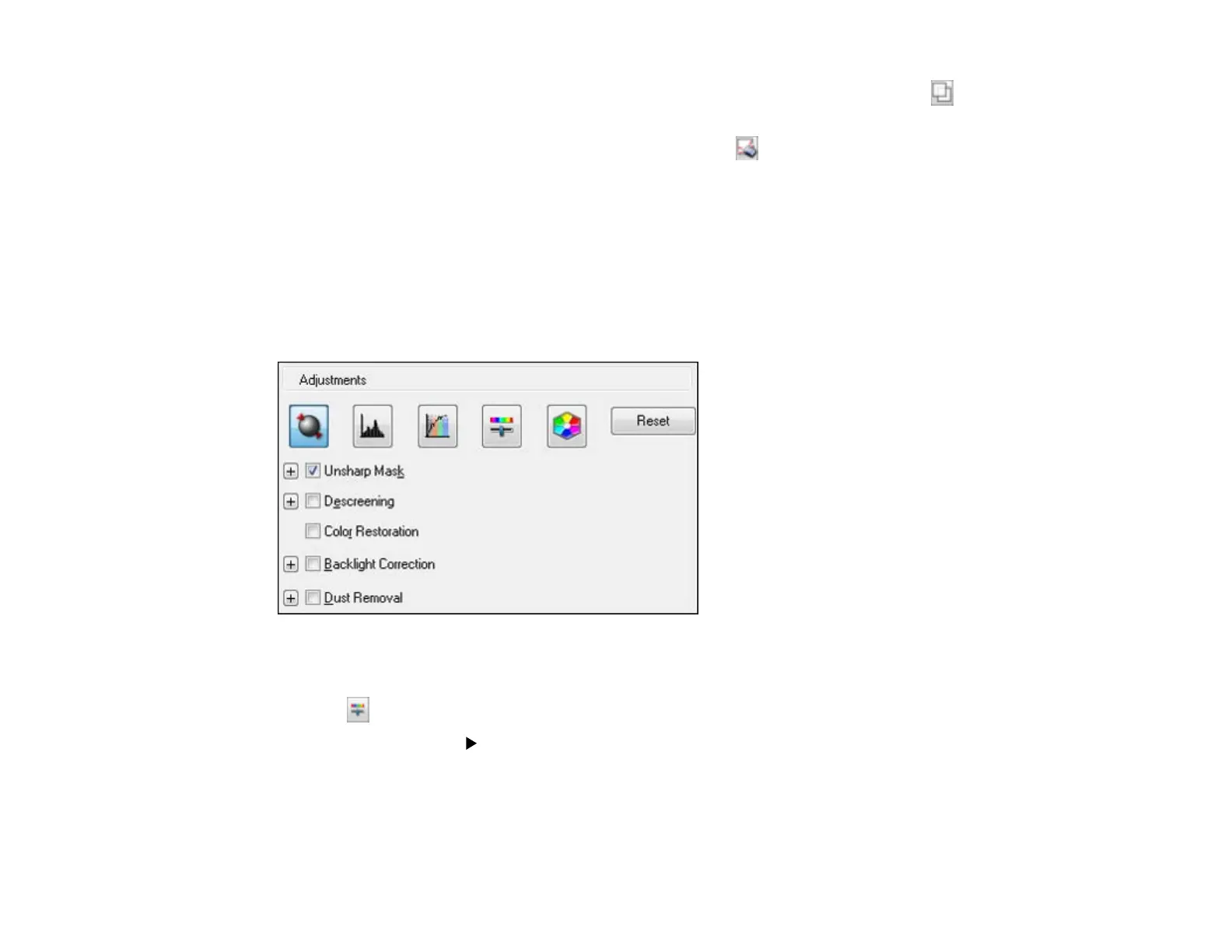 You can select these Adjustments options in Epson Scan Professional Mode.